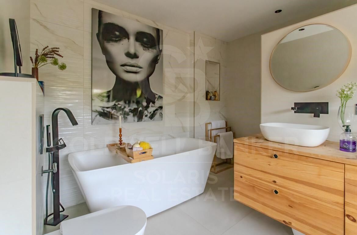 The rooms are distributed as follows: The main house, where there are two bedrooms and two bathrooms, kitchen and living room. The master bedroom features a private terrace and a spacious ensuite bathroom with a deep soaking tub and walk-in shower.