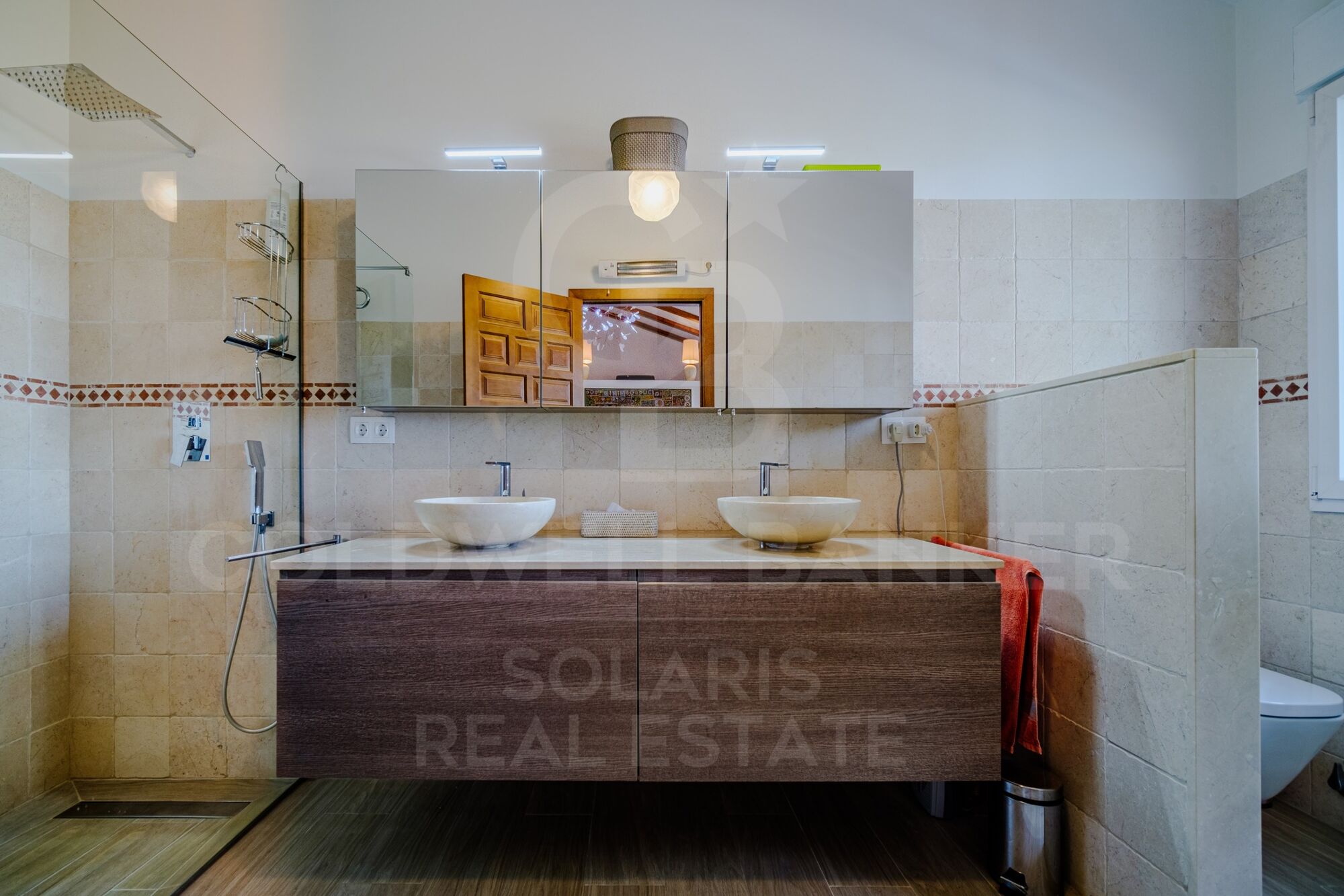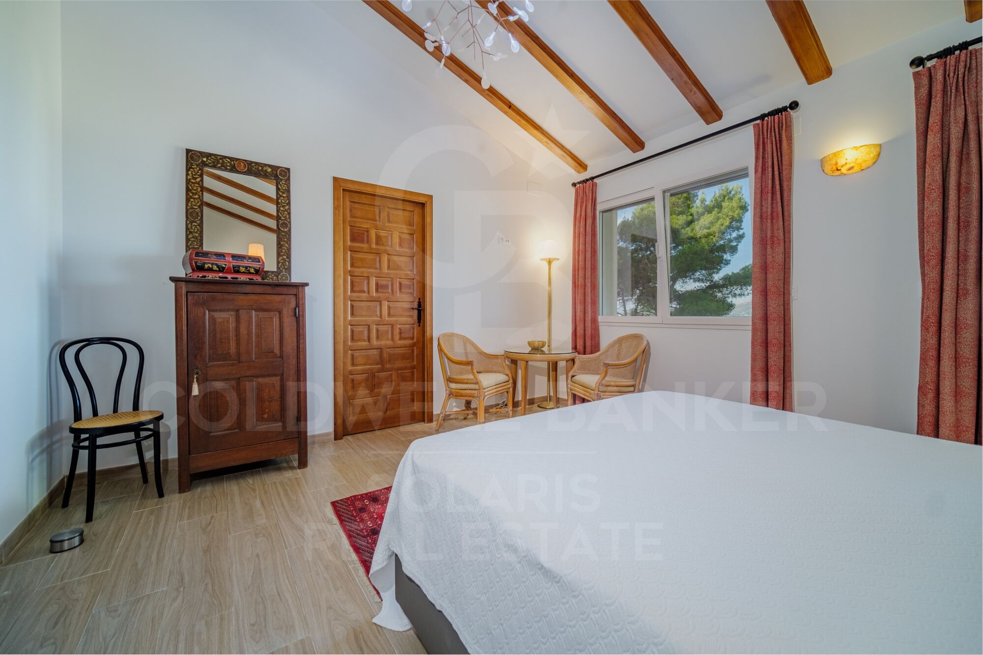 The ground floor is completed by a double bedroom which includes an en-suite bathroom, a utility room and a guest toilet. Going upstairs, we discovered 4 additional master bedrooms, each with its own private bathroom and spectacular views. The garden, an oasis with mature landscapes and fruit trees, is home to a 5x10 m infinity pool with a saltwater system and a practical electric cover.