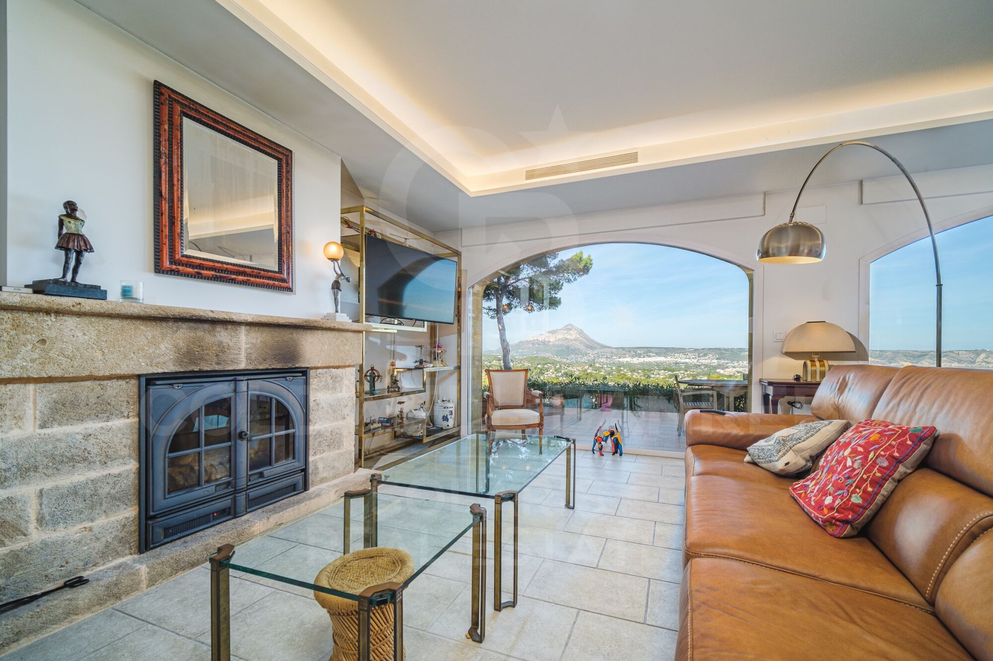 Upon entering the double-height lobby, a spectacular living room is revealed with double panoramic windows framing 180° views of the sea, Cape San Antonio and Montgo Mountain. This space transforms at nightfall, offering a fascinating cityscape. The kitchen, equipped with top-of-the-line Miele appliances, connects seamlessly to the dining room and covered terrace.