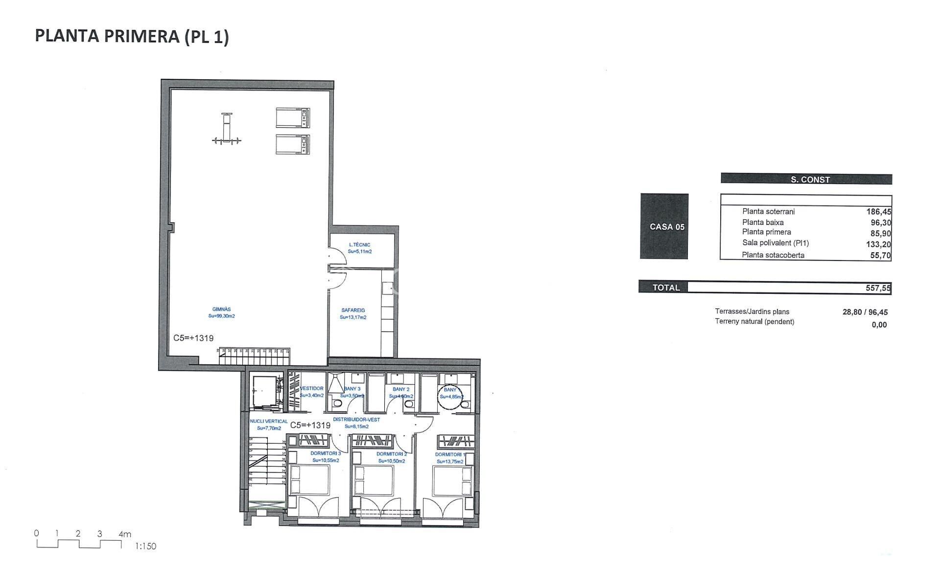 We are pleased to present the new housing development 'LES LLARS DE LA FONT', an exclusive residential project consisting of 3 elegant houses located in a fantastic enclave in La Massana, in the historic centre of Sispony. Carefully placed in the main street. Their stone and wood façades blend in with the mountain and the village's traditional borders.~They are designed to be energy efficient and use the latest technologies and construction techniques to minimise environmental impact and make responsible use of resources. They are homes that make the most of natural light, are insulated from inclement weather and outside noise, ventilated in a controlled manner, thus obtaining a high level of comfort and wellbeing, as well as excellent air quality and a healthy indoor environment, all while using the minimum amount of energy and therefore achieving the maximum energy rating class A.~~Cal Rossinol, has a constructed area of 571m2 including 153m2 of terraces. In addition, it shares with the other 2 units of the promotion, a garden of 384m2.~It is divided into 3 floors plus basement, communicated by lift and stairs.~- Floor 0: Comprising a large entrance hall leading to the spectacular day area, comprising a spacious living-dining room with a fully-equipped open-plan designer kitchen. It also has a guest toilet. This floor is designed to enjoy with family and friends and to give a feeling of warmth and spaciousness, the space has large windows that guarantee the entry of sun and natural light, through its first terrace.~- Floor -1: Composed of the sleeping area. It consists of 3 large double bedrooms, all of them en suite, with fitted wardrobes and access to the second terrace of the house.~- Floor -2: for this floor there are two options of distribution~ A: a Master suite with dressing room and a complete bathroom with a marvellous spa area. ~ B: a suite with dressing room and bathroom and a multi-purpose room that can be used as a gym, living room...~ In both options, always with access to the third terrace of the house. Also on this floor, there is a comfortable laundry area.~- Floor - 3: Here we find the garage with capacity for 4 cars. On this floor there is also a storage room.~~All the rooms of the house have direct connection with three large south-east facing terraces that guarantee an enormous amount of sunshine and excellent panoramic views.~The homes have a rainwater reuse system, and domestic hot water is produced by means of a highly efficient aerothermal system.~As for the qualities of the development, natural materials of proximity are used, such as stone masonry walls and slate tiles, or wooden roofing and carpentry, avoiding the use of polluting or toxic materials. ~~Highlights:~- High-performance exterior carpentry with concealed leaf and triple low-emission glazing. Armoured access door and fixed side panel in natural wood veneer with oak finish and automated sectional door with remote control in garages.~- Terraces with non-slip natural stone paving slabs, natural stone or coated steel railings. Garden planters and rust steel handrails on terraces. Natural stone masonry garden fences.~ High quality interior cladding, paint, natural stone, steel, wood or rectified porcelain stoneware according to design and decoration.~- General flooring of wood flooring, or rectified porcelain stoneware in bathrooms and polished concrete with epoxy resin in the garage.~- Interior woodwork in oak veneer with matt stainless steel handles and fittings. Fitted wardrobes with worktop vessels and doors and fronts veneered to match the joinery, with recast handle.~- Fully fitted kitchen with high quality Bosch appliances, large Franke stainless steel sink and Grohe pull-out mixer tap. High-end base units and tall units with soft close and heavy duty drawers, model ONE08 finished in Ernestomeda. Worktop, front and shelf in artificial marble stone.~- Bathrooms with high quality materials and modern and functional design. Shower with shower enclosure made of artificial stone or, depending on the option chosen, a bathtub with sauna is also available.~- The layout of the lower floor is flexible and allows the entire floor to be converted into a fantastic 60m2 suite or to combine a bedroom with a spacious multipurpose room. The house can thus be adapted to different needs and ways of living.~- Stuv model C.1 integrated fireplace insert~- Ski locker with locker, bench and boot warmer~- Low-maintenance landscaping, consisting of shrubs and hydroseeding~- Silent lift through the house and lift for vehicles to access the garage. ~- Pre-installation for electric vehicle charging. Bicycle rack including charging point. Photovoltaic installation~- Jung Smart Home home automation system including the connection gateway with aerothermics and internet connectivity, with integrated control displays in the video door entry system. Garage door control, lighting, air conditioning and hot water production, security and anti-intrusion with movement detectors, alarm and video surveillance.~- Underfloor air-conditioning with underfloor heating that provides a pleasant warmth at a low, evenly distributed temperature; and ventiloconventors that cool the air quickly. Both units are concealed and are powered by aerothermal energy. They also have an indoor air renewal system with heat recovery and filtering of allergens and pollutants.~~Do not hesitate to contact us for any further information you may require.~