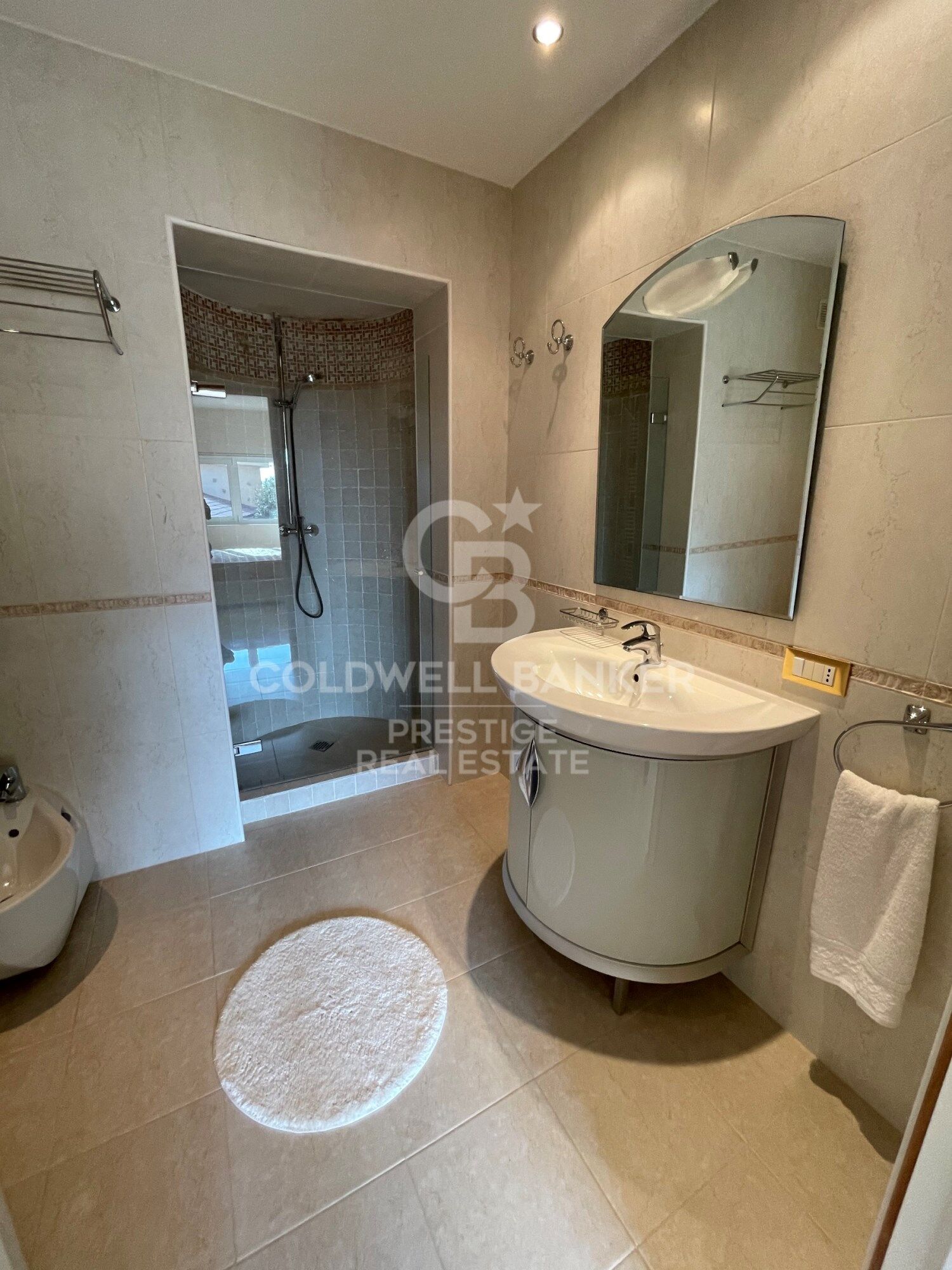 The interior of the house is decorated in creamy white tones to match the marble floors, a perfect combination that matches the walls of the whole villa, it also has huge windows that provide a lot of light to the house.