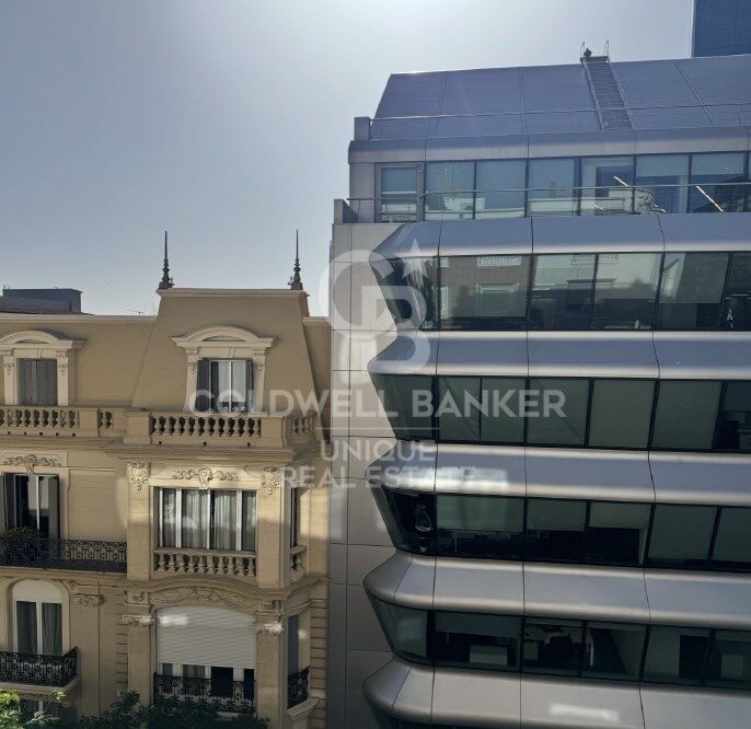 With an area of 165 m² and completely exterior, the flat stands out for its classic façade with five windows that open onto Monte Esquinza street, providing excellent natural light. In addition, it has direct access to a large garden terrace with charming views of the Villa de París and the Plaza de Colón, a real privilege in this area.