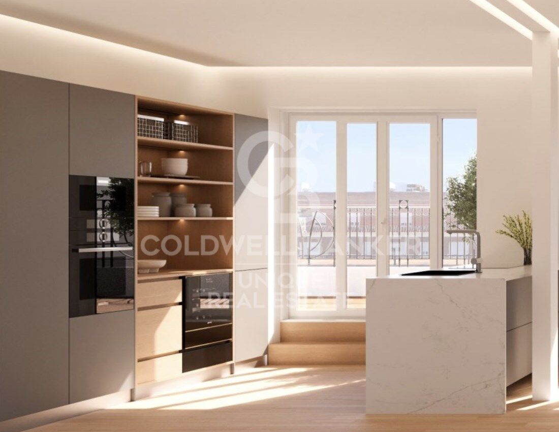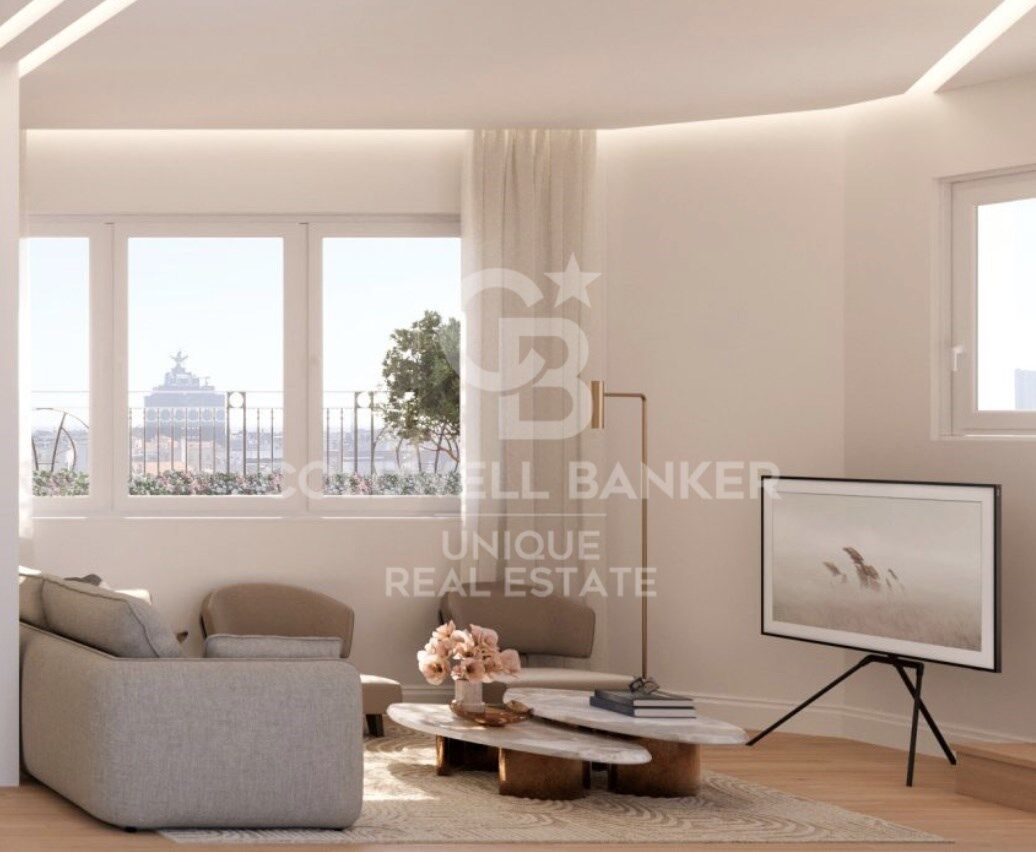 The layout includes two bedrooms, three bathrooms, and an open-plan living area that connects harmoniously with the outdoor space. In addition, the building features a concierge service and a parking space, ensuring comfort and security in one of Madrid's most sought-after locations.