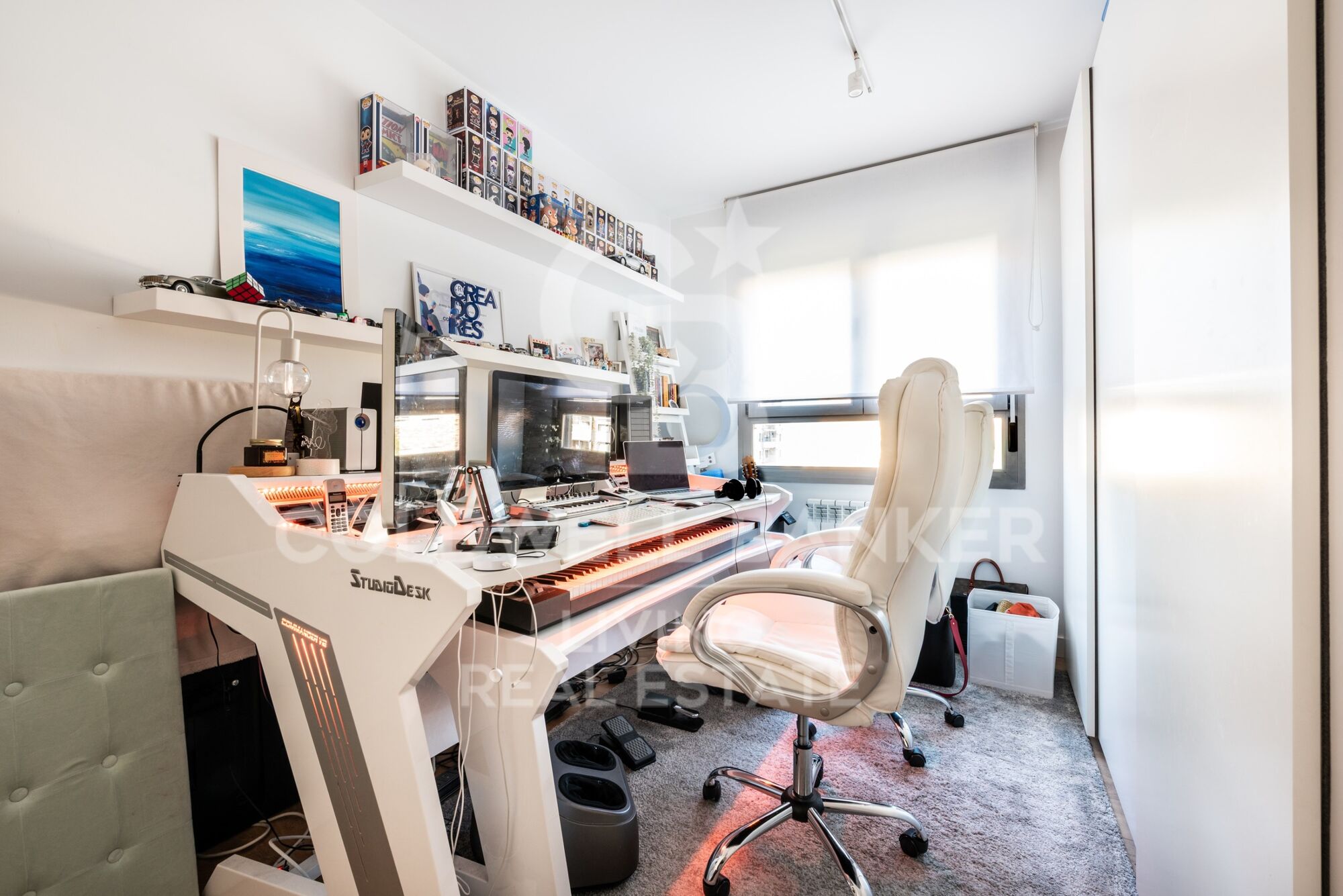 La cocina, de diseño contemporáneo, cuenta con zona de office y está totalmente equipada, con mobiliario a medida y amplias superficies de trabajo. Además, dispone de zona de lavandería y tendedero cubierto con ventilación natural al exterior.