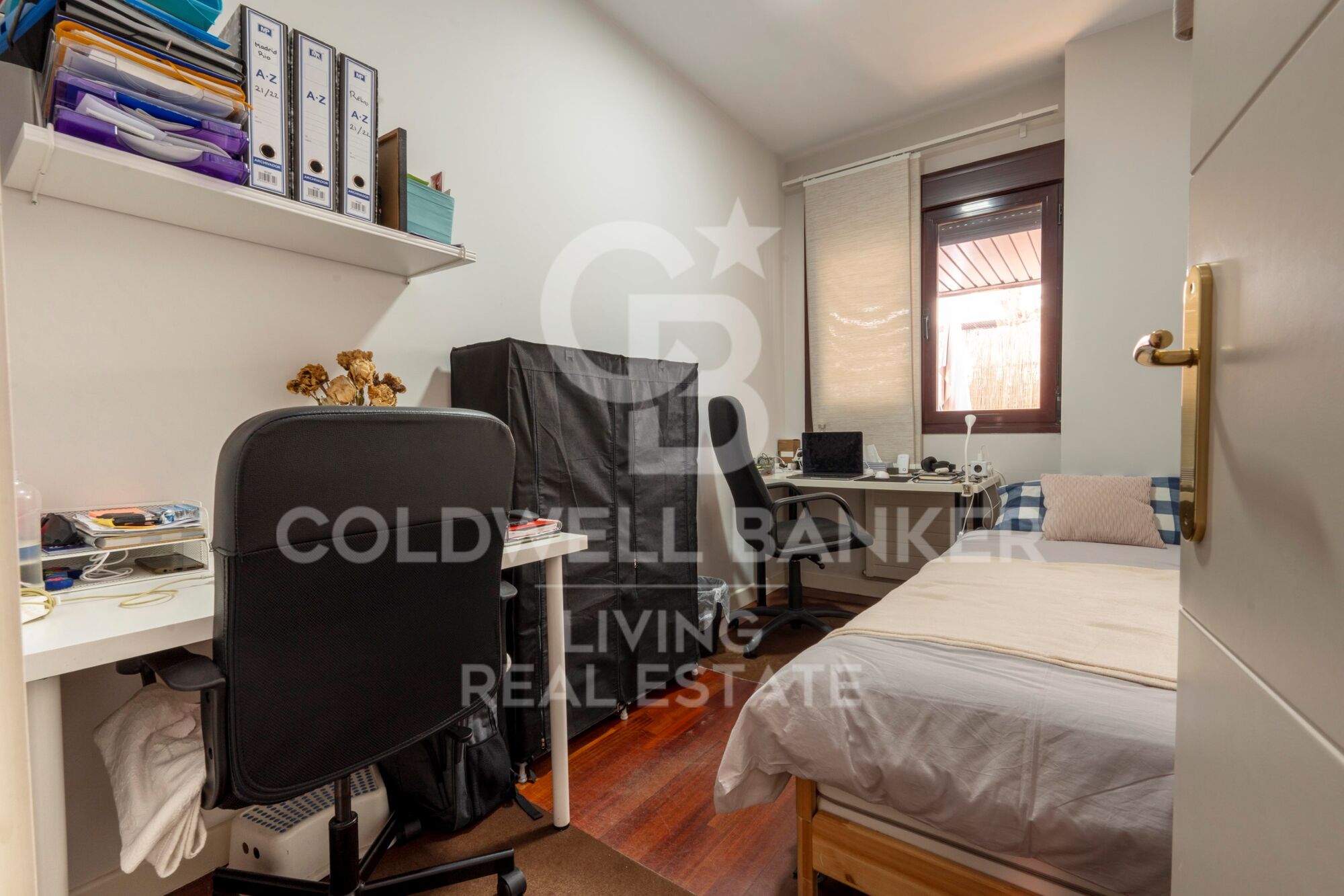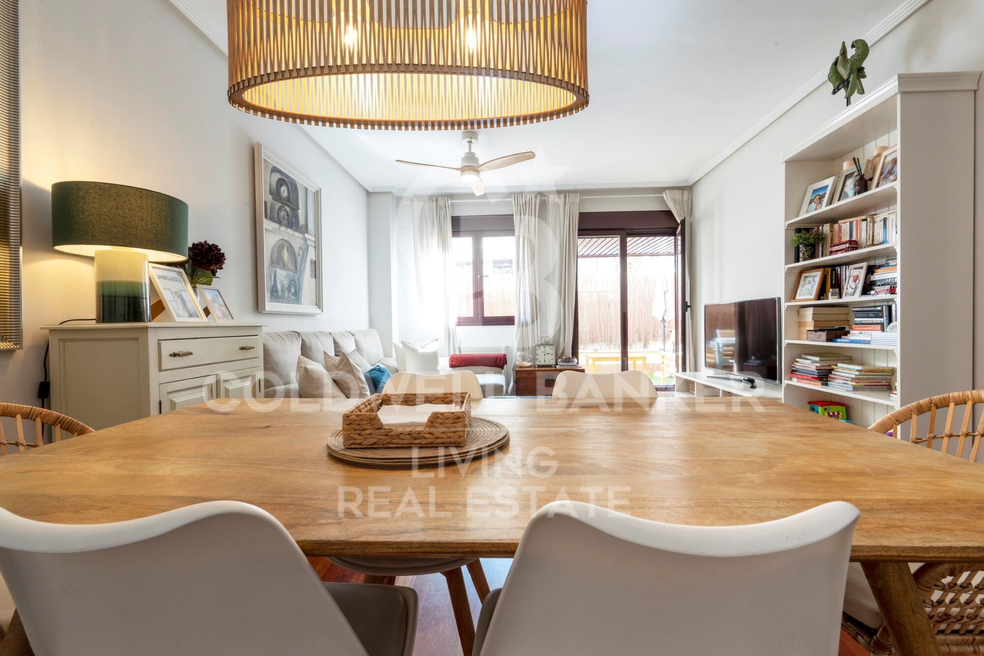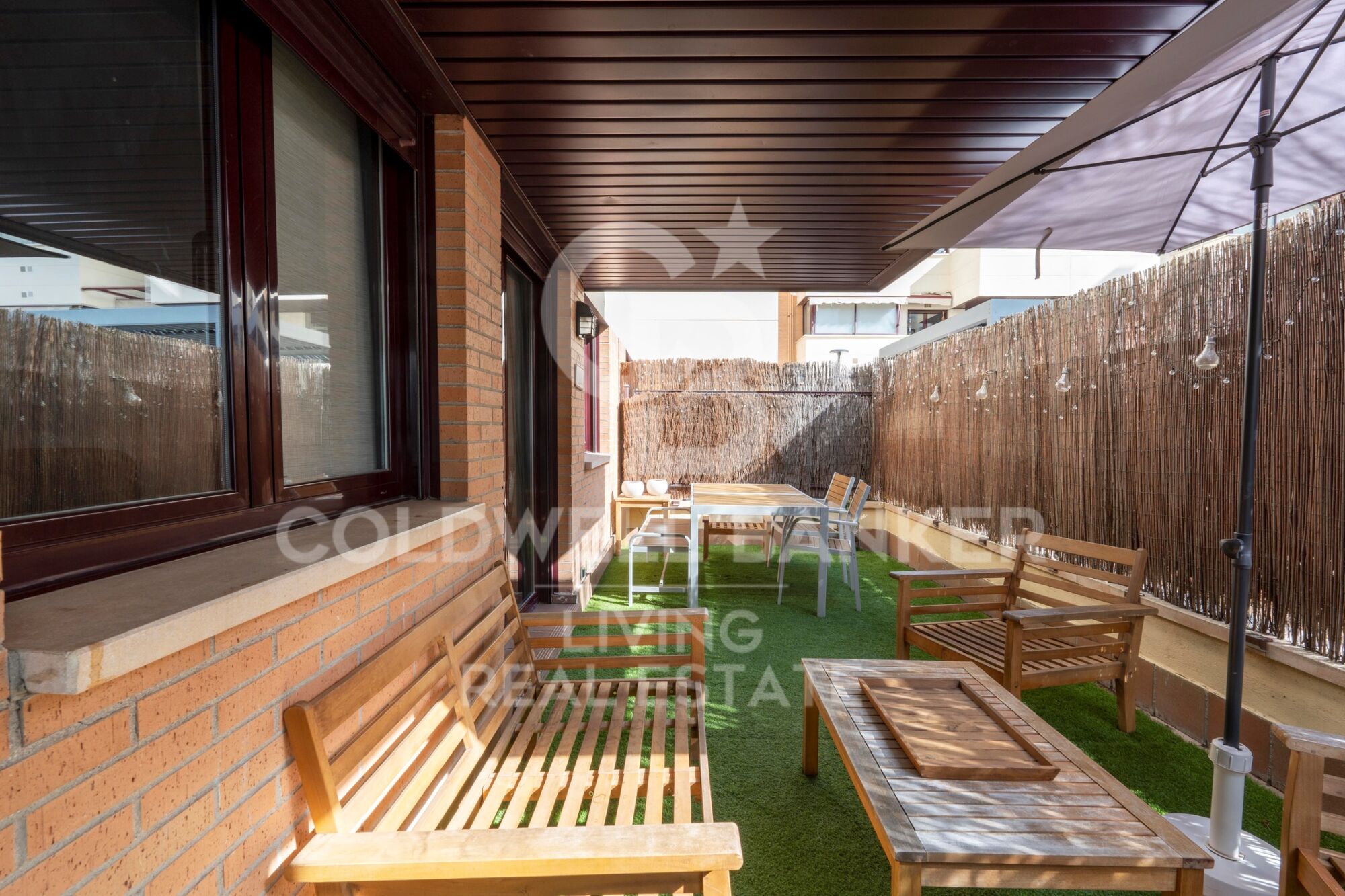 La vivienda cuenta con 140 m² construidos, distribuidos en una planta cómoda y funcional. Dispone de jardín/terraza privada de 20 m², tres dormitorios principales de amplias dimensiones con armarios empotrados el dormitorio principal con baño en suite y un cuarto adicional que puede destinarse a despacho o dormitorio de servicio. Completa la distribución con tres baños completos.