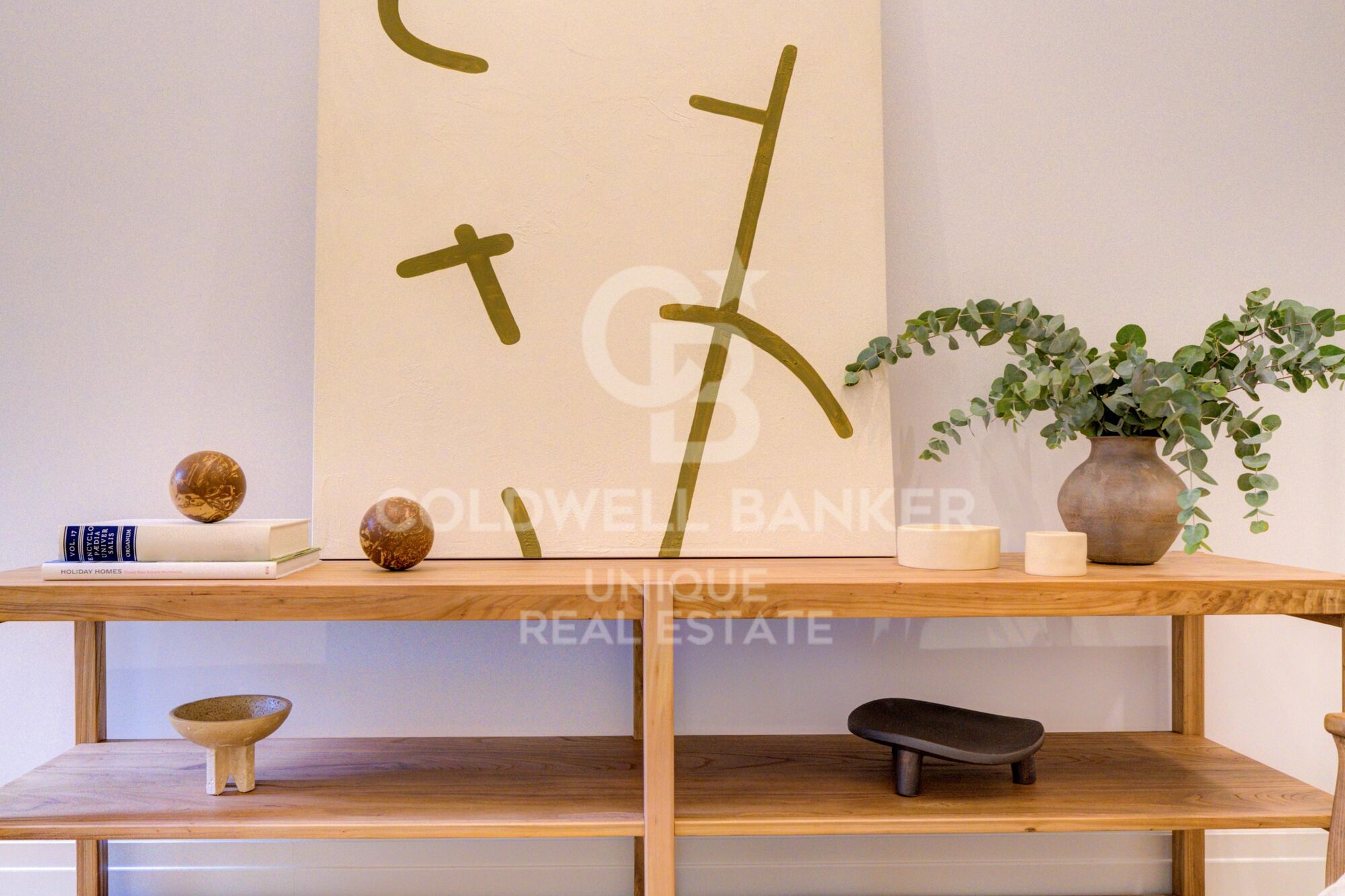 In the night area, we find two large double bedrooms with en-suite bathrooms, and the master bedroom features a walk-in closet. This magnificent property is being renovated with top-quality materials and a very elegant contemporary design.