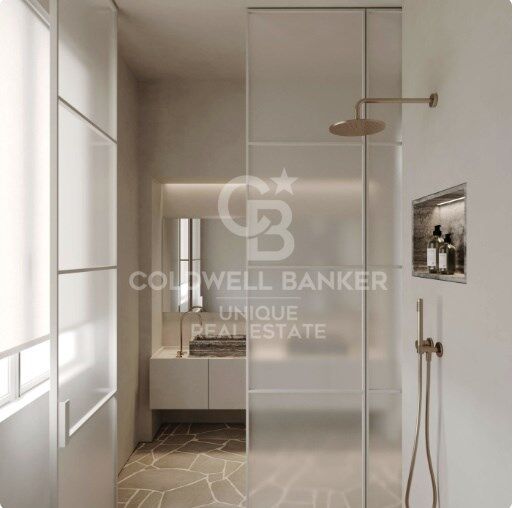 The renovation project, designed by SO Arquitectura, proposes a refined and functional distribution with three spacious double bedrooms, each with an en-suite bathroom, in addition to a service bedroom with its own bathroom. The social area is conceived as an open, bright, and welcoming space, perfect for everyday living and entertaining. The kitchen, thoughtfully designed, can be integrated with the living area or kept separate. The living-dining room includes a cozy reading corner for moments of relaxation.