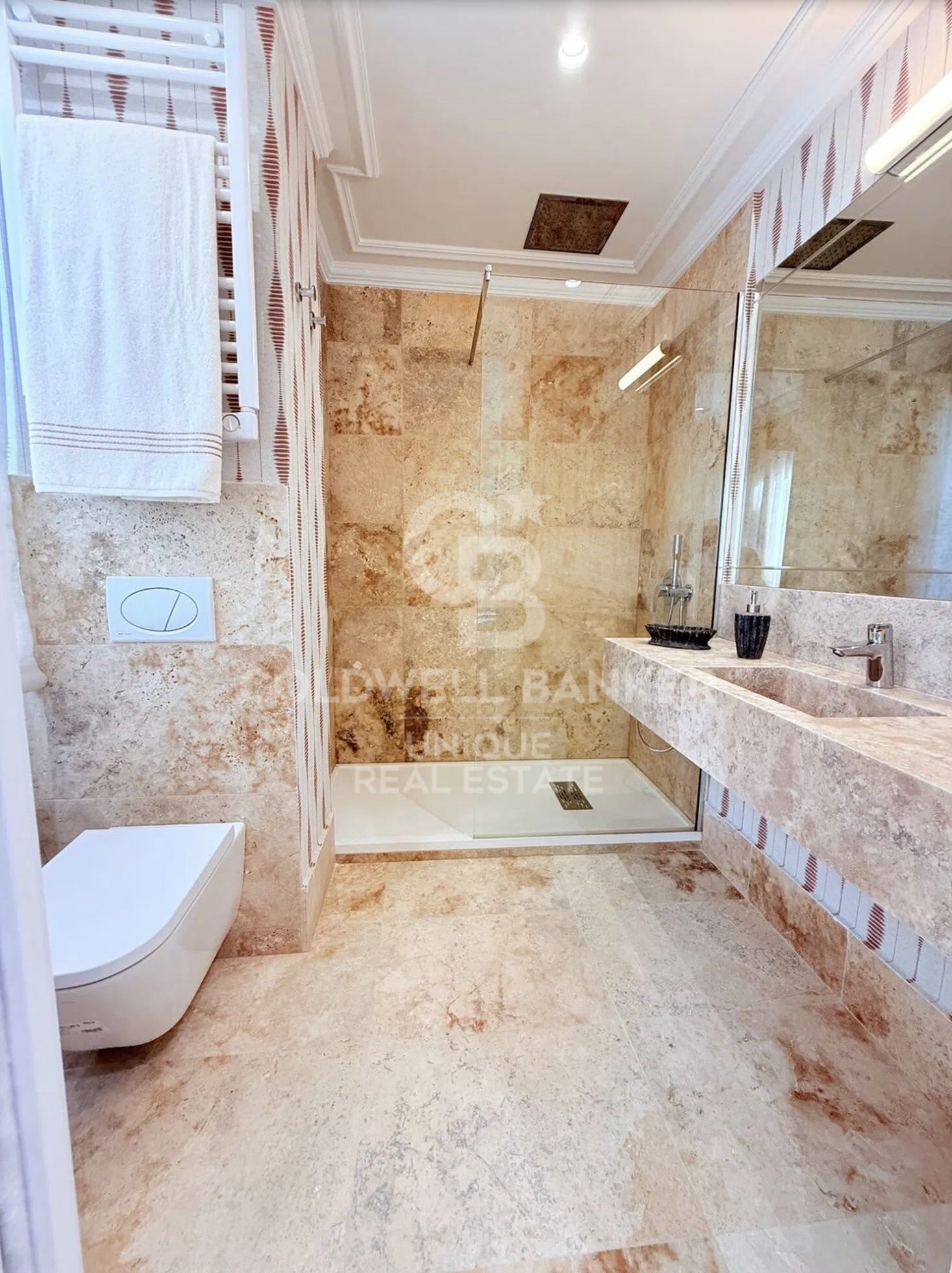 The property stands out for its generous spaces, modern layout and luxury finishes. It features three bedrooms, two of them with en-suite bathrooms, as well as a third bedroom with an independent bathroom, a guest toilet and a separate laundry area. The large living-dining room with oversized windows provides direct access to the terrace and enjoys beautiful natural light. The fully equipped open-plan kitchen is designed as an elegant and functional area ideal for everyday living. The elevator offers direct access into the apartment, ensuring maximum privacy and exclusivity.