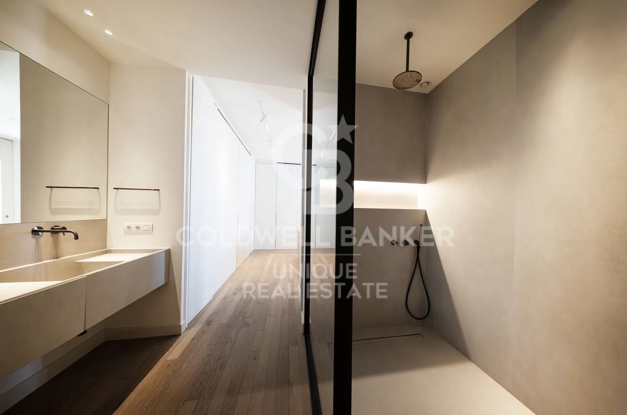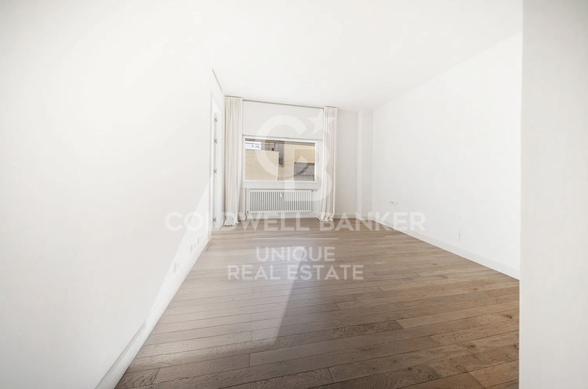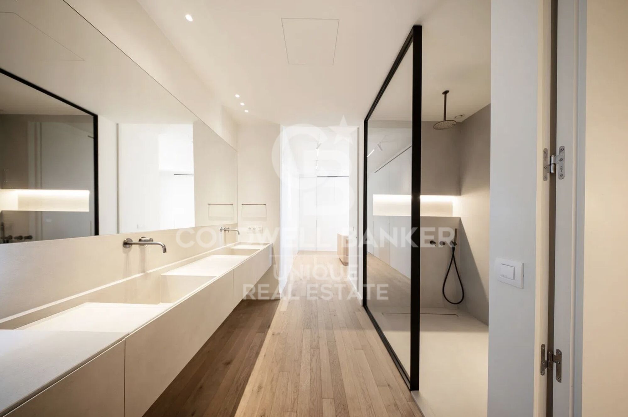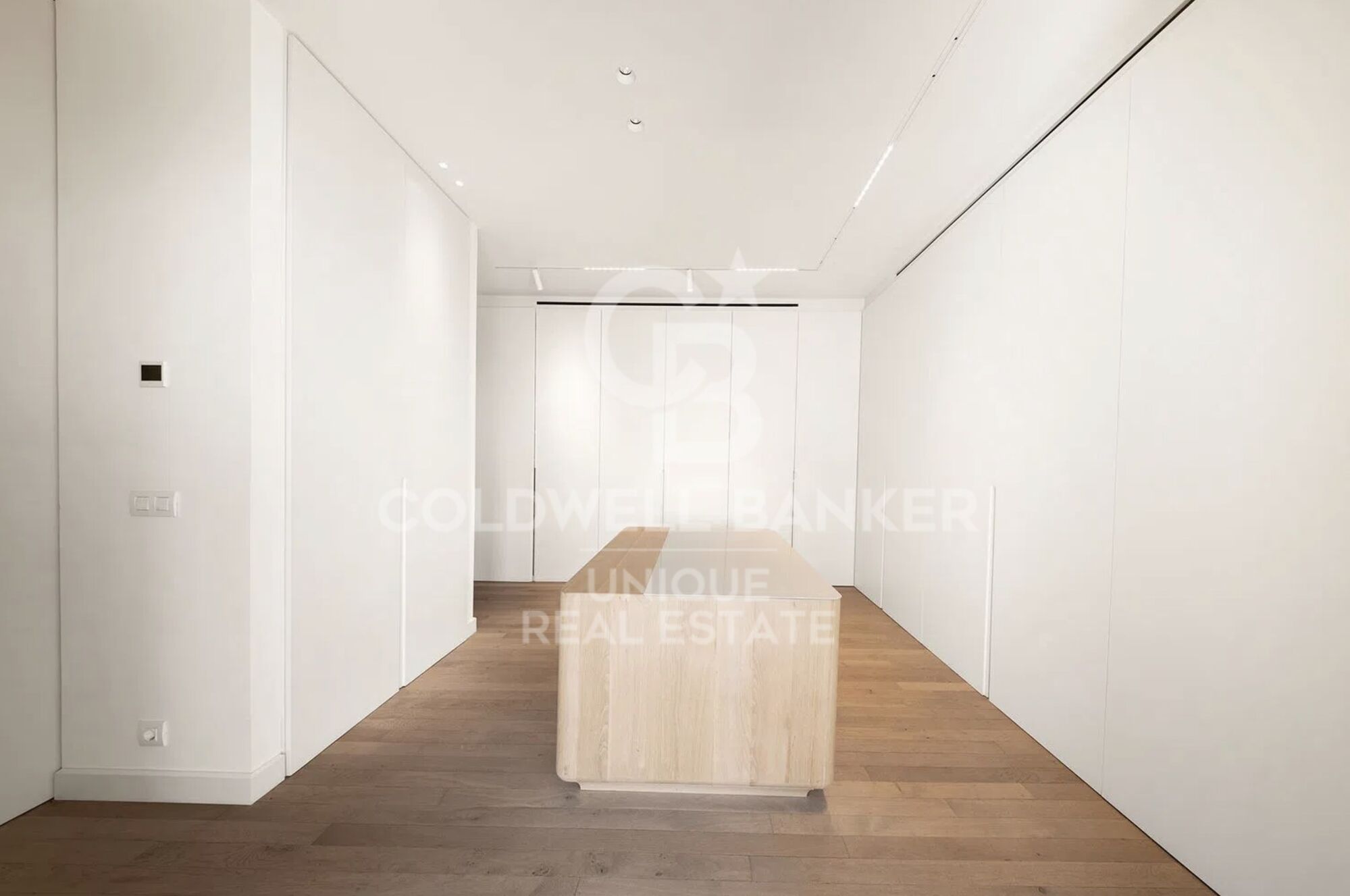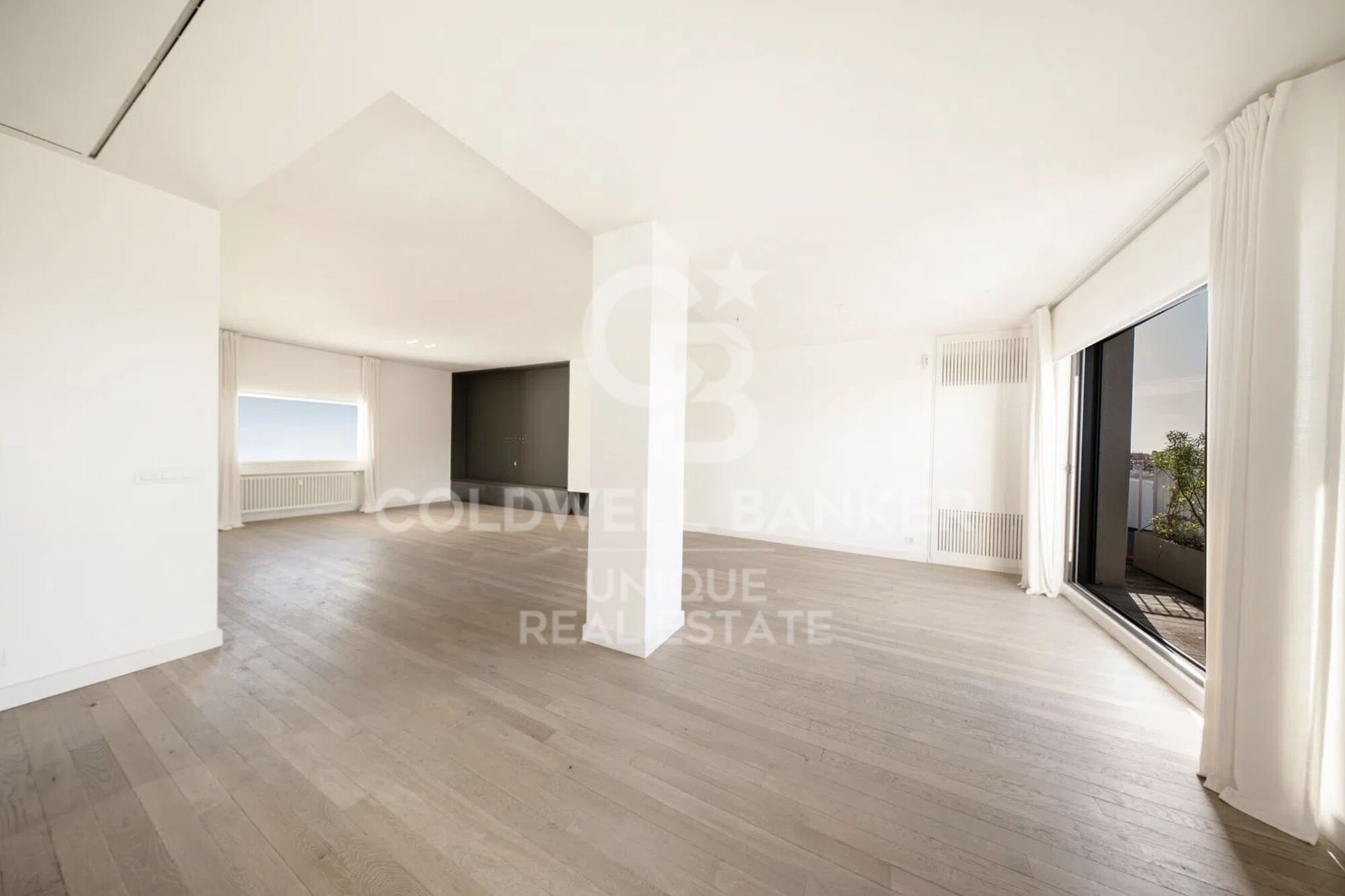 With an area of 366 m² completely renovated with high-end finishes, this unique home offers a sophisticated lifestyle in one of the most prestigious areas of the capital. From the main lobby there is access to a large open-plan social area where architectural barriers have been removed to optimise spaces. The living-dining room and living room, presided over by a modern design fireplace, open through large floor-to-ceiling windows that flood the room with natural light. From here there is access to a continuous balcony that connects directly to the main terrace, perfect for moments of relaxation or outdoor meetings.