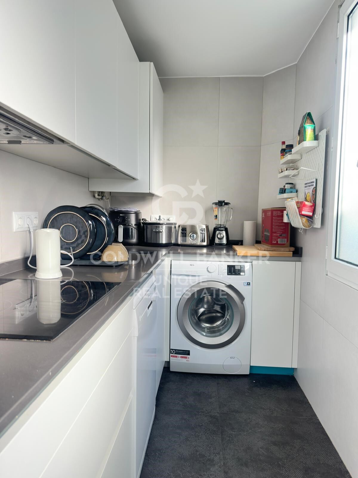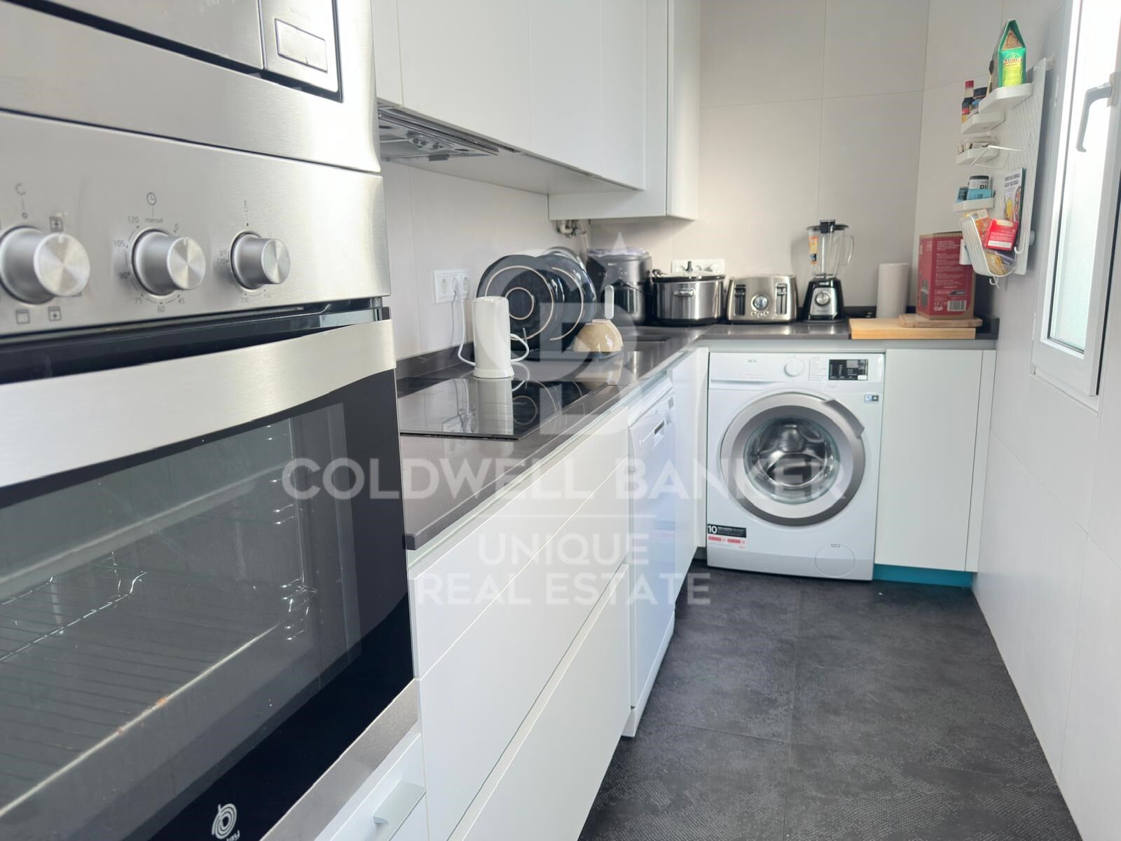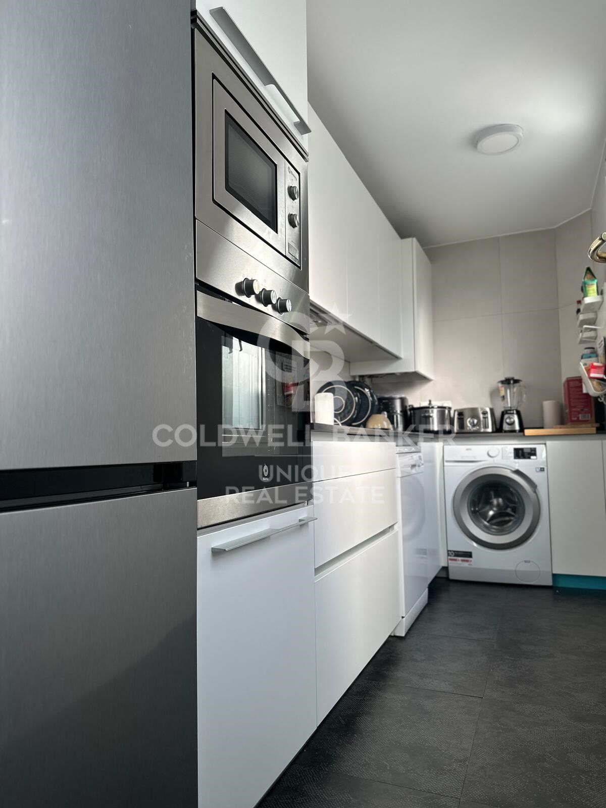 The living area consists of a spacious and bright living-dining room and a separate kitchen, as well as a second full bathroom.