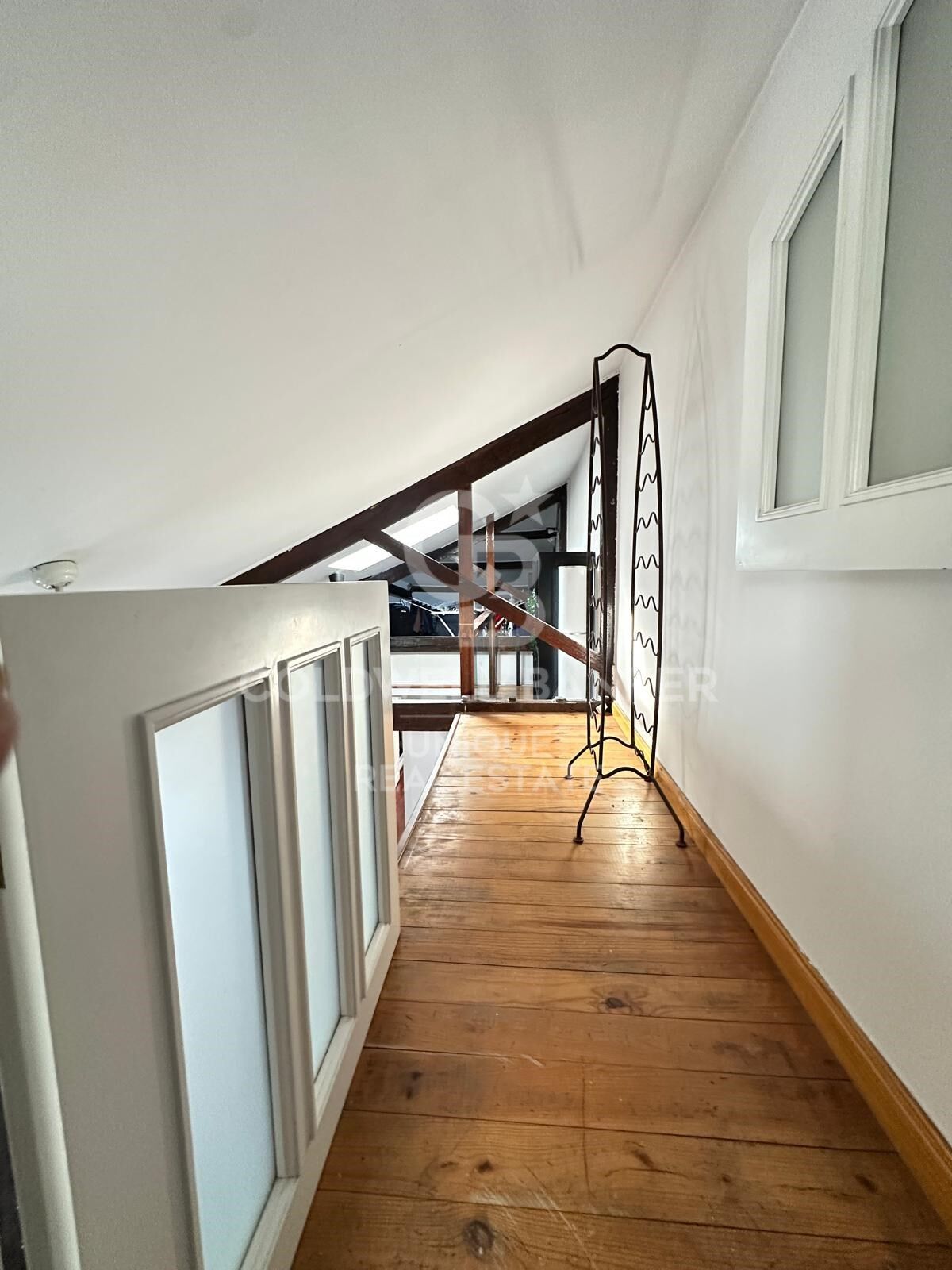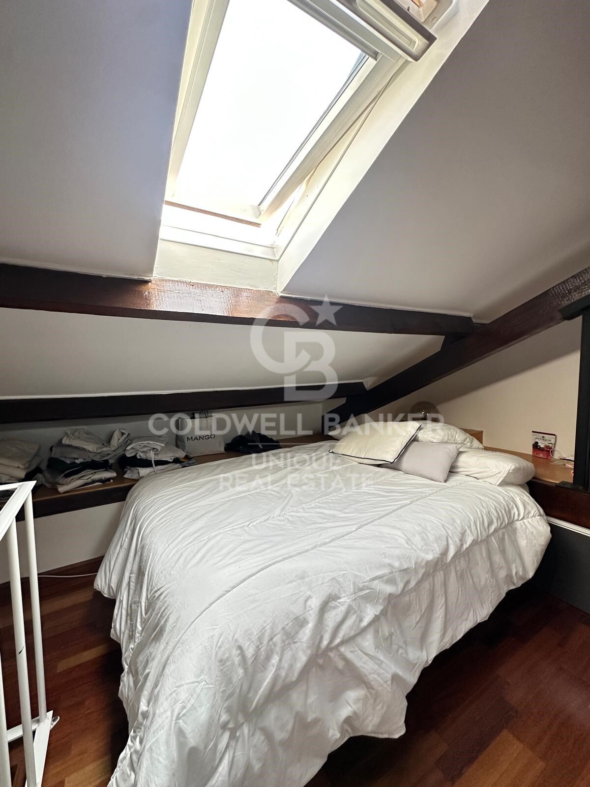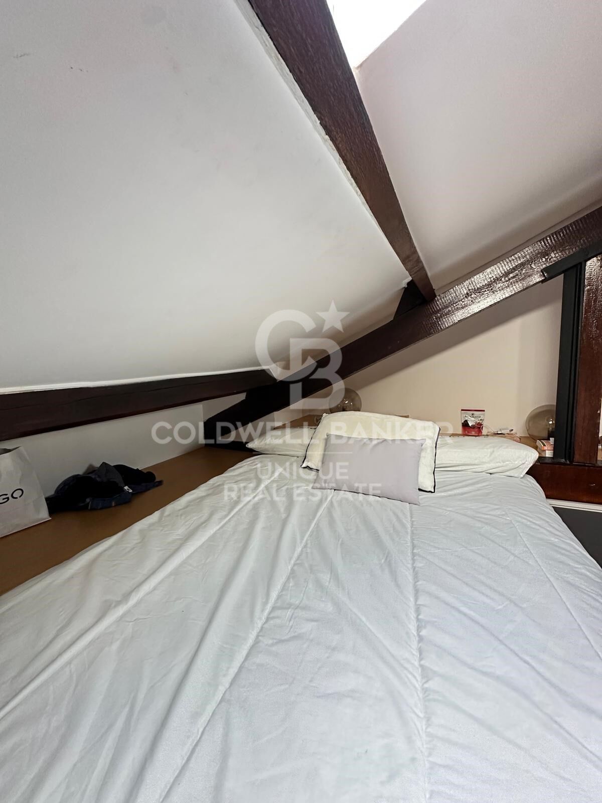 The sleeping area features three bedrooms. The master bedroom includes an en-suite bathroom and direct access to the terrace, offering added privacy and comfort. On the main floor, there is a second double bedroom, very bright, while the third bedroom is located in the upper attic-style level with double-height ceilings, accessed via an internal staircase. This upper level also includes a multifunctional space ideal as a workspace, library, or even an additional bedroom.