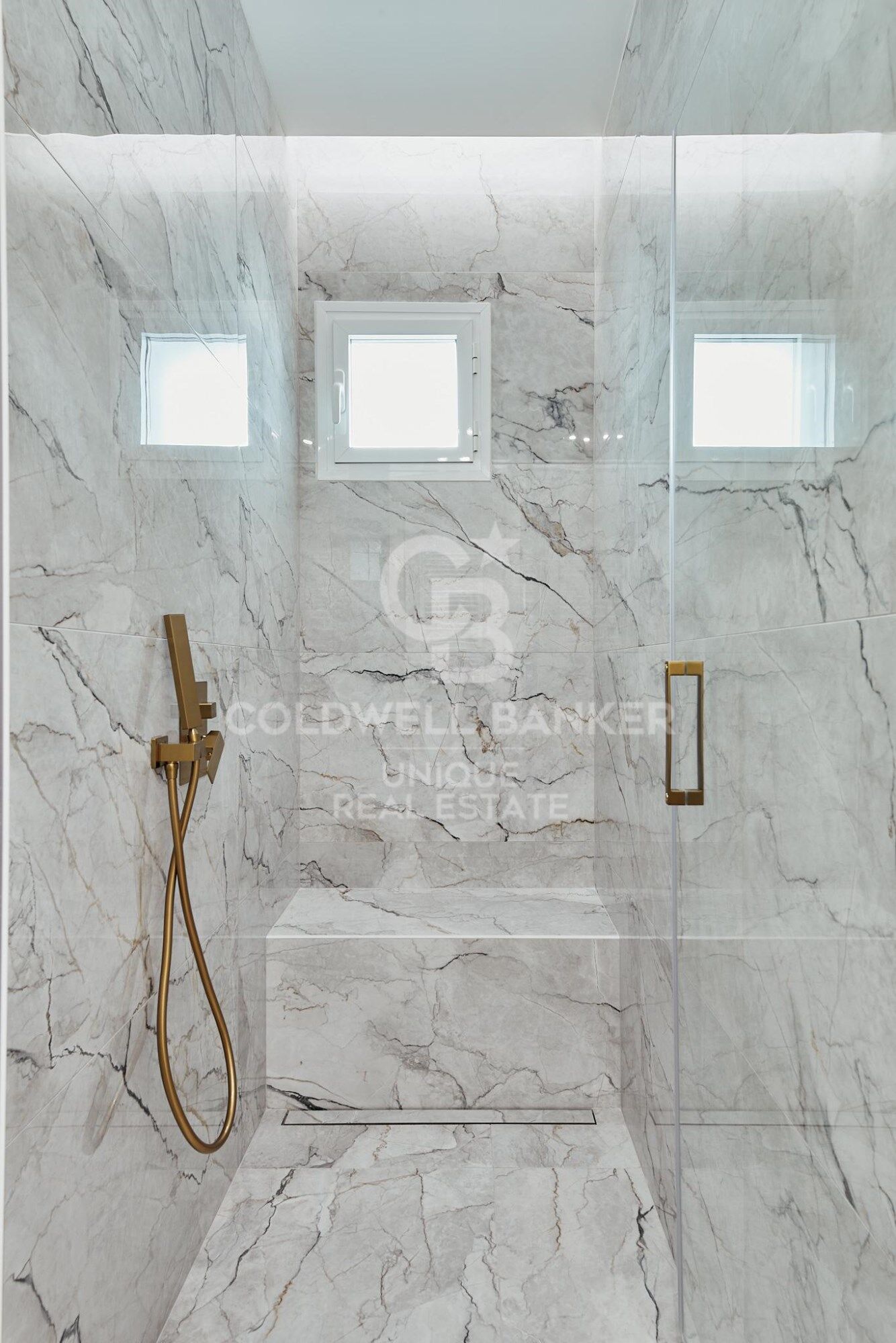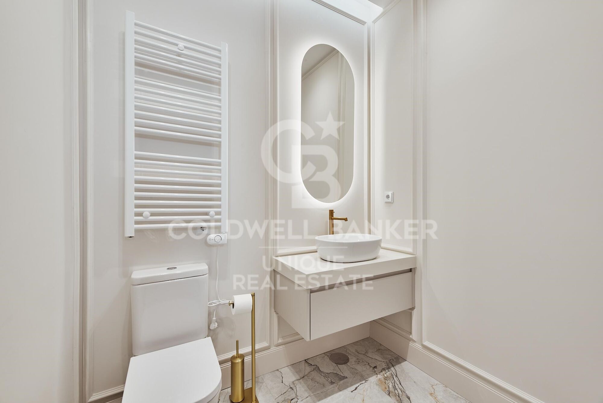The recent renovation project has resulted in a spacious and well-balanced home, where a very bright living-dining room with access to a balcony becomes the social heart of the property, complemented by a fully equipped kitchen, three bedrooms, three full bathrooms, and a convenient laundry room.