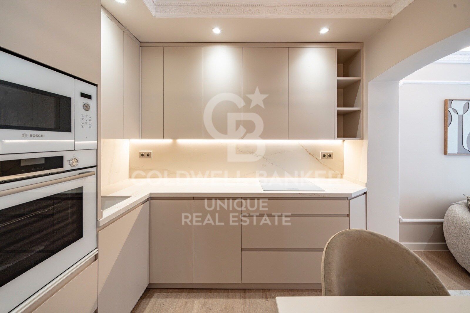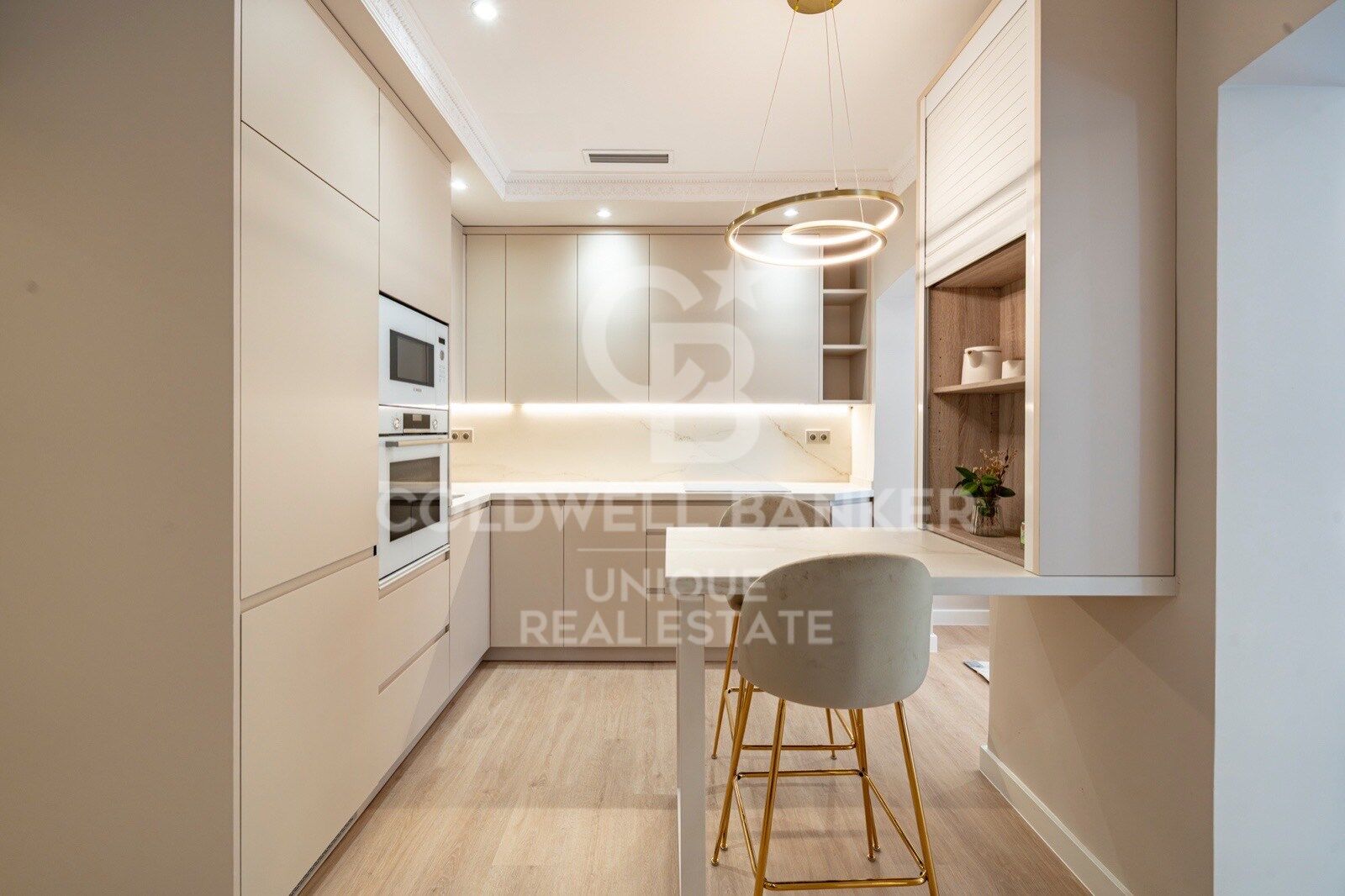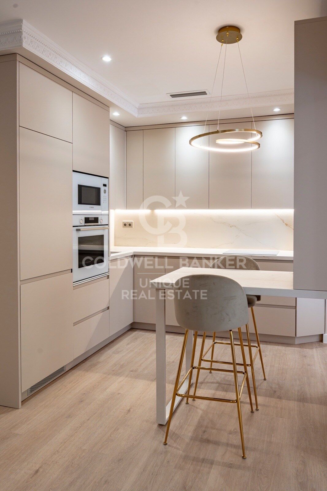 Situated on the third floor with an elevator, this 113 m² property has been completely renovated with high-quality materials, offering a modern and elegant atmosphere.