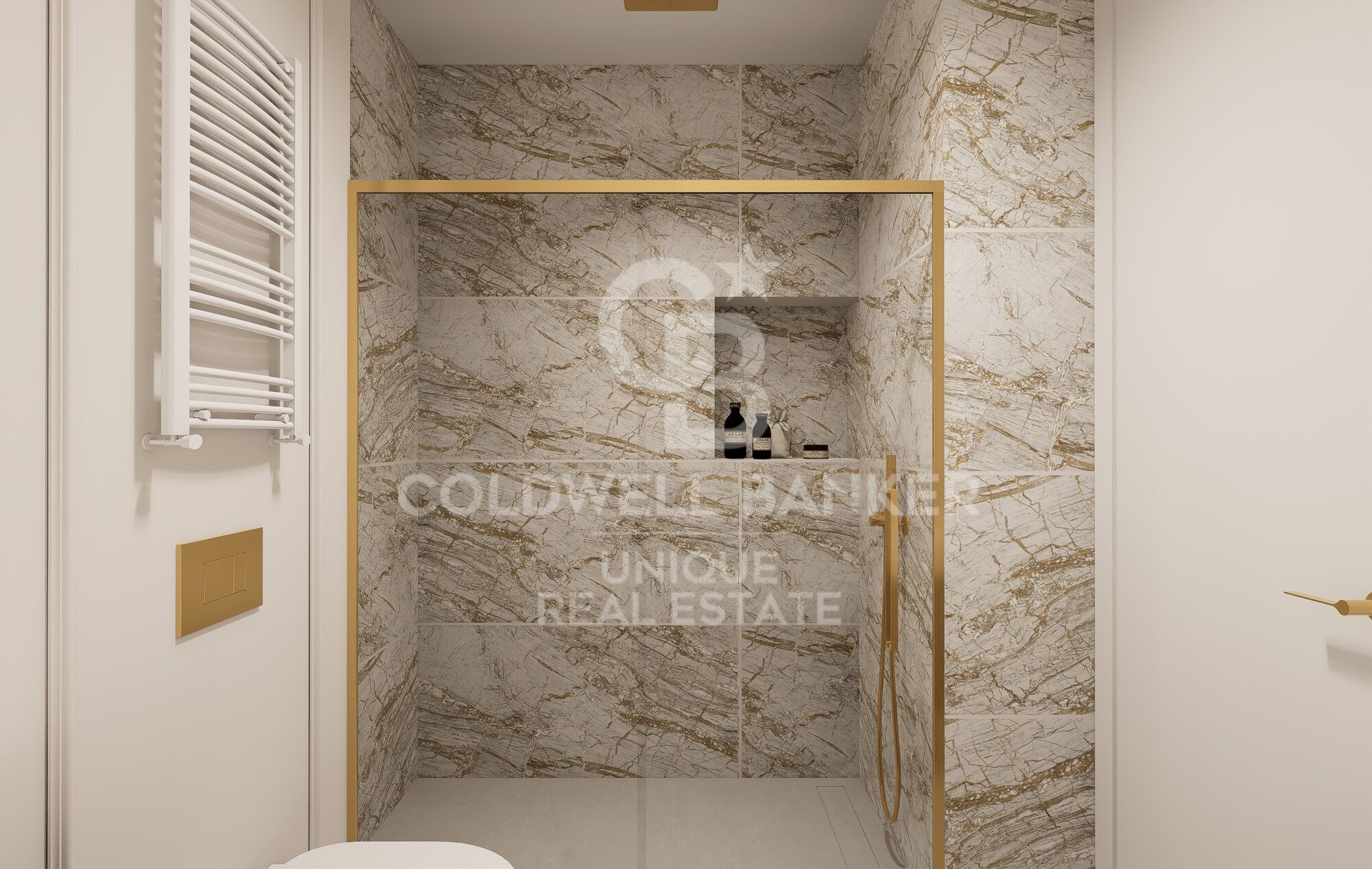 It features two spacious bedrooms and two bathrooms, ensuring comfort and functionality in every corner. The property comes fully furnished and equipped, with a modern kitchen ready to use, air conditioning, and central heating that guarantee year-round comfort.