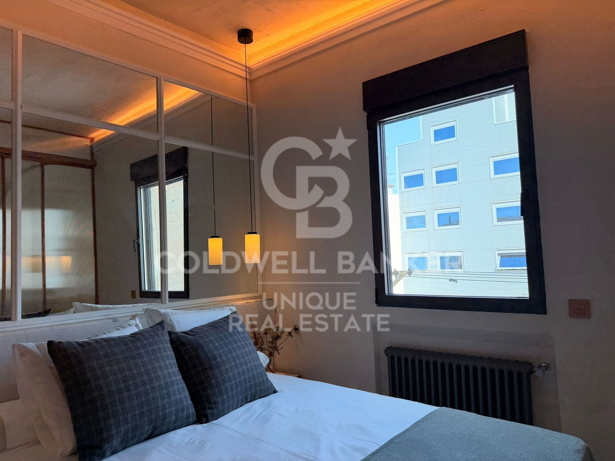 The property, completely renovated and furnished, offers a bedroom with dressing room and bathroom integrated into an open concept, creating a modern and functional space.