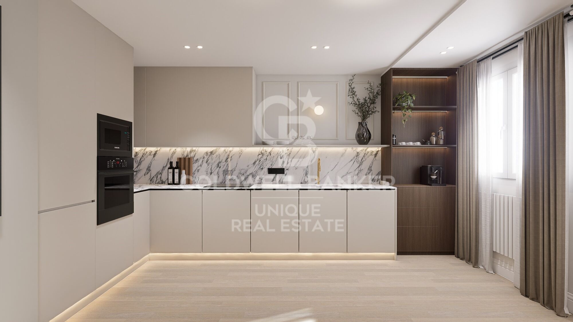 A project that opens up to the sea and the mountains, whose architecture merges harmoniously with the environment, creating a unique habitat where the sun and the Mediterranean mark the rhythm of time. At the same time, it is perfectly connected to Estepona and Marbella, which allows it to be enjoyed all year round. The shapes of the design adapt to the orography of the terrain, taking advantage of its elevated position to offer unbeatable views of the coast and the mountains. Let yourself be captivated by its simple and fluid lines, inspired by the solidity of classic constructions. The generous overhangs, which open to the outside, allow optimal use of sunlight throughout the year. This detail, combined with large terraces and large windows, integrates the environment as an essential element of the project. Whether on the large terraces of high-rise homes, in the private gardens on the ground floors or on the panoramic solariums of the penthouses, in every corner of this home you will have the Mediterranean at your feet. Inside, the unique layout is designed to offer spacious and bright spaces, perfectly connecting the interior environments with the exterior, maximising natural light and the feeling of spaciousness. The living room, open to the kitchen, flows continuously onto the large terrace, creating a fluid and open living experience. The exclusive spa, designed for total relaxation, invites you to immerse yourself in the water, enjoy the sauna and Turkish bath, and simply let yourself be carried away by rest. The project also features top-notch sports facilities, including a fully equipped gym with natural light and views of the stunning landscaped gardens. A watchtower protected by the Sierra Bermeja and oriented towards the beaches of Estepona, where you can enjoy the infinite nuances of the sunrises on the Costa del Sol and stay to watch the sunset, while the long summer nights begin to unfold before you. #ref:CBSH232_C
