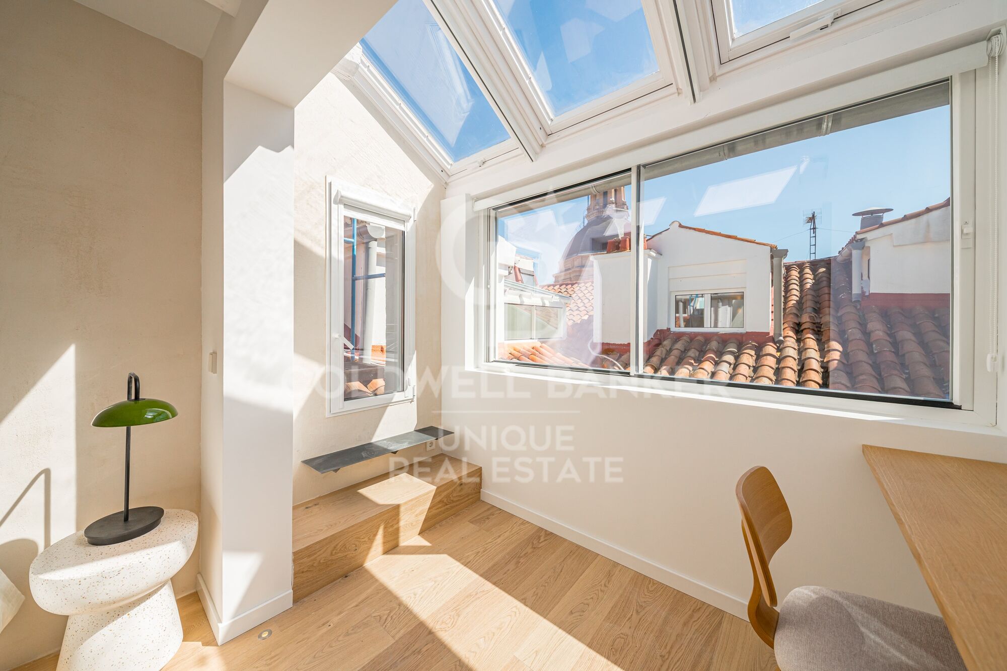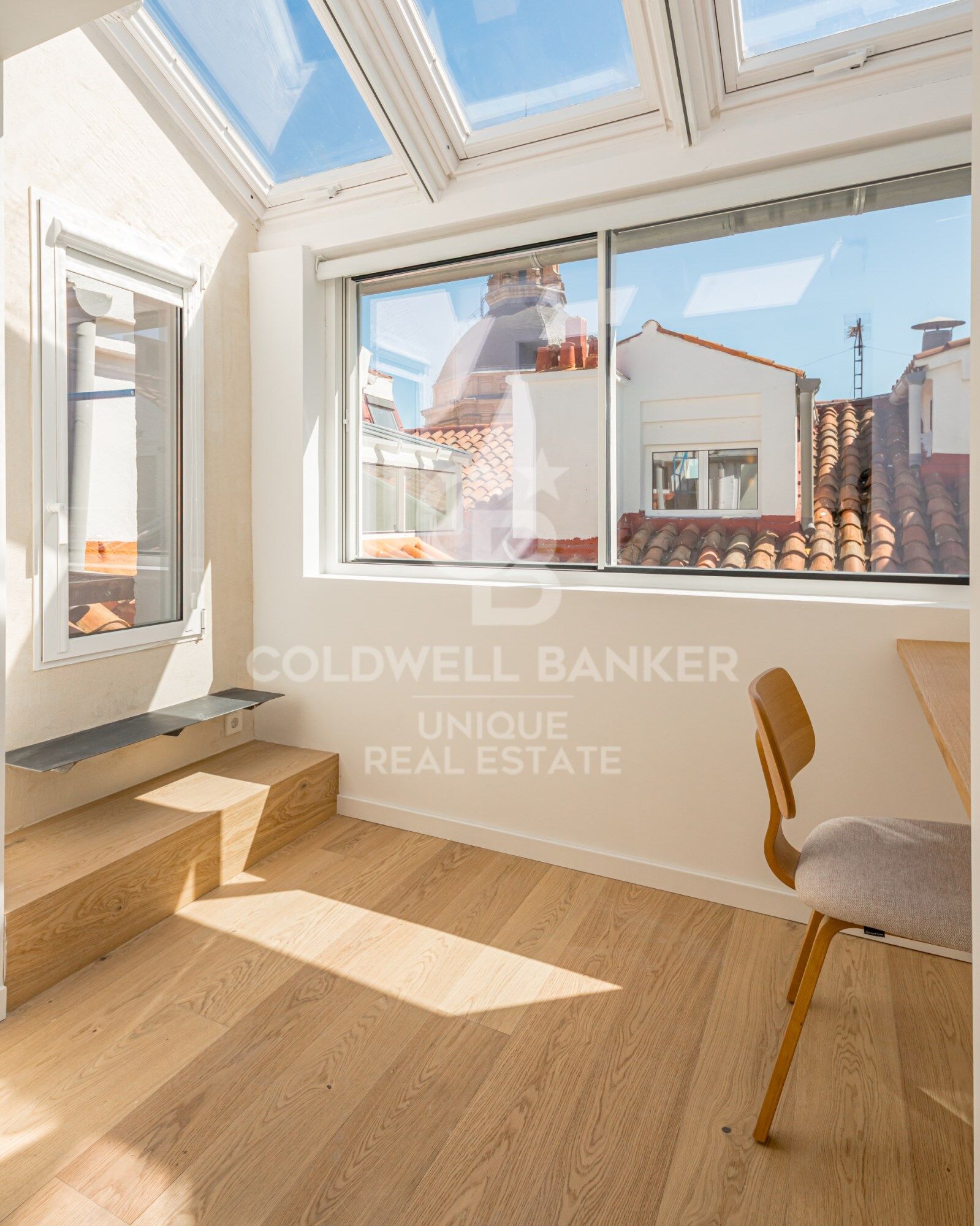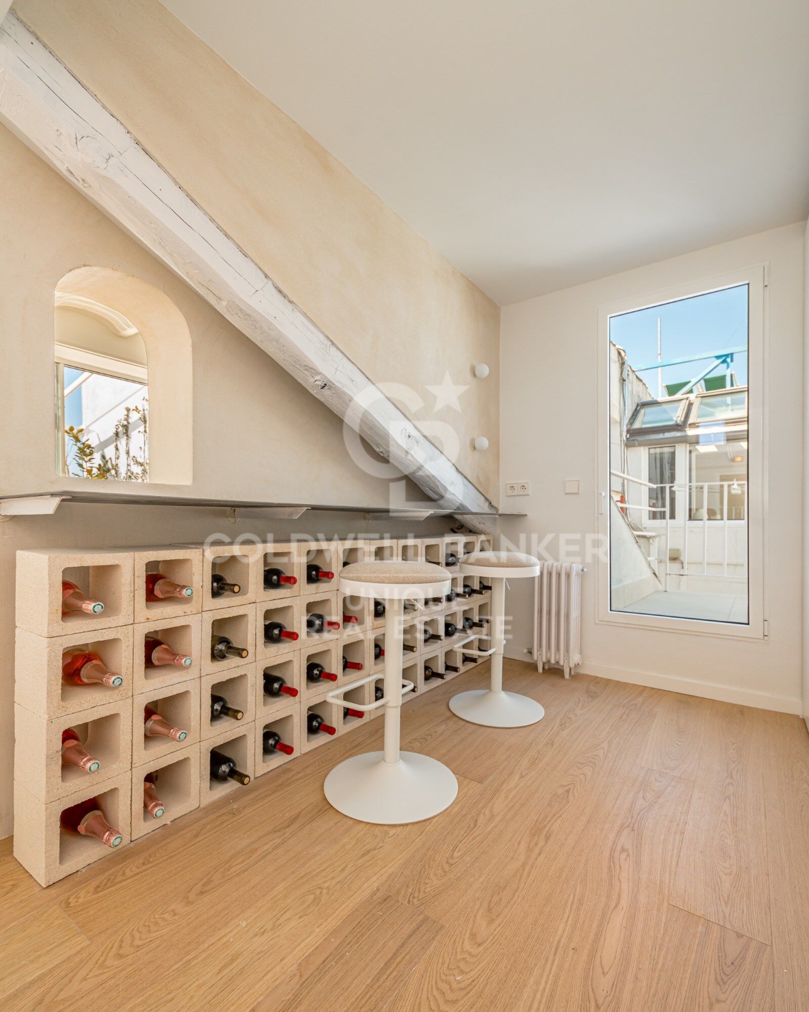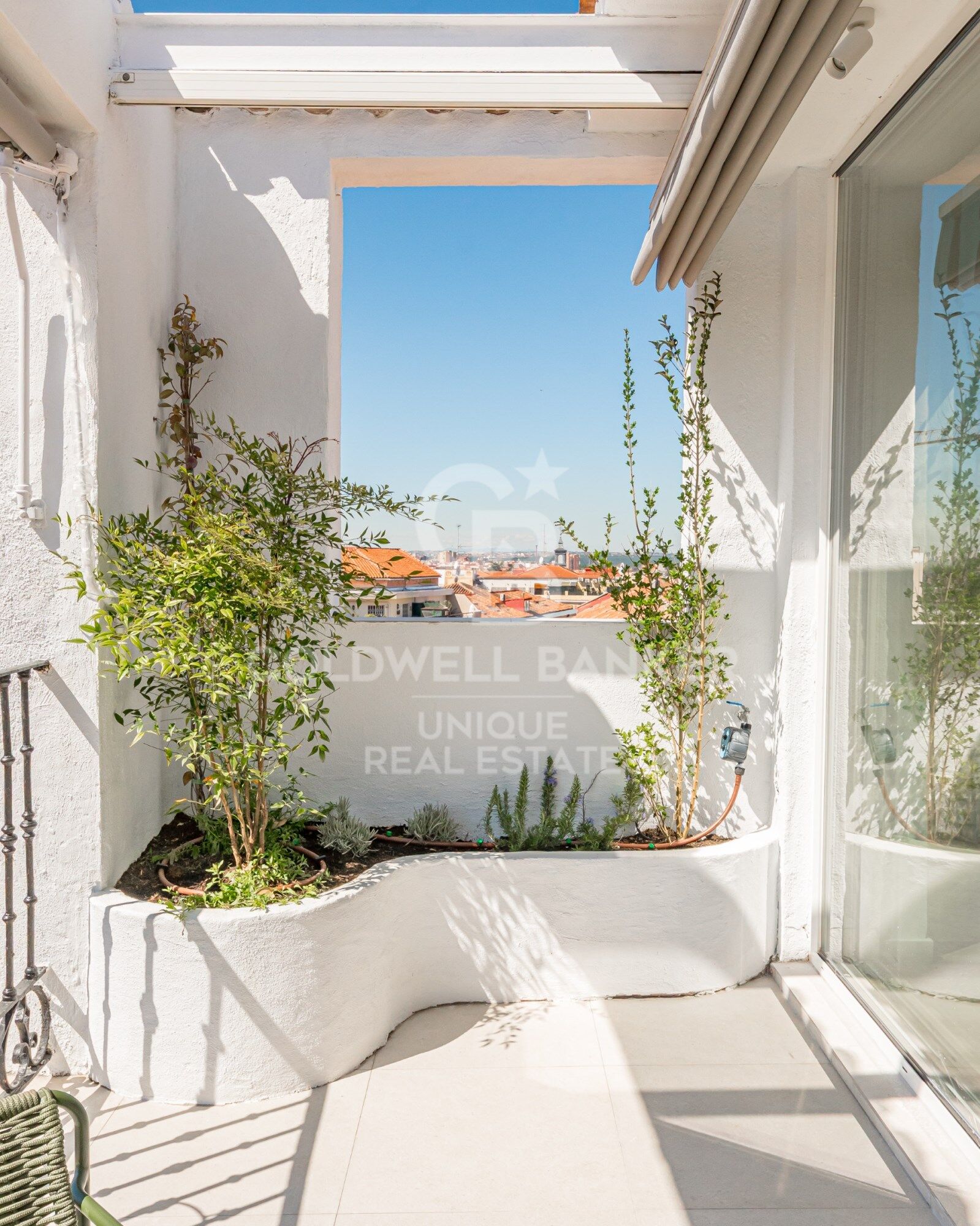 This exterior penthouse, where the famous poet Pedro Salinas lived, has a layout designed for maximum comfort, with the day area characterised by high ceilings, while the night area has a cosy attic design, with the exception of the master bedroom. The property comprises four bedrooms, three bathrooms, an open-plan kitchen-dining-living area, a conservatory and two terraces. There is a lift, air conditioning and individual gas heating.