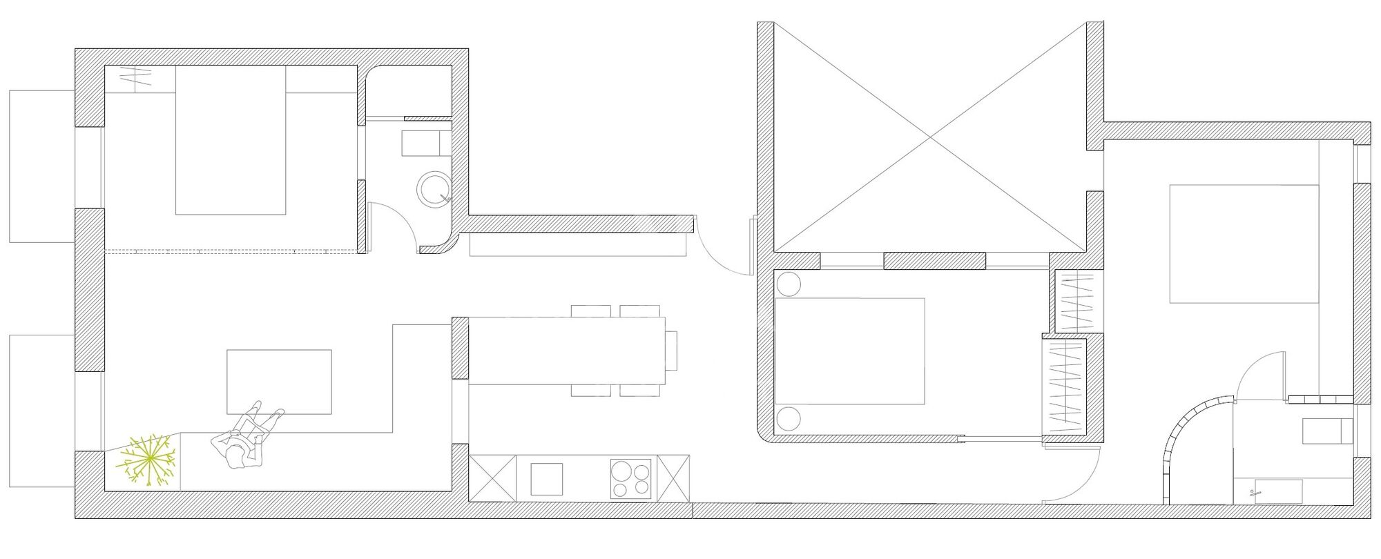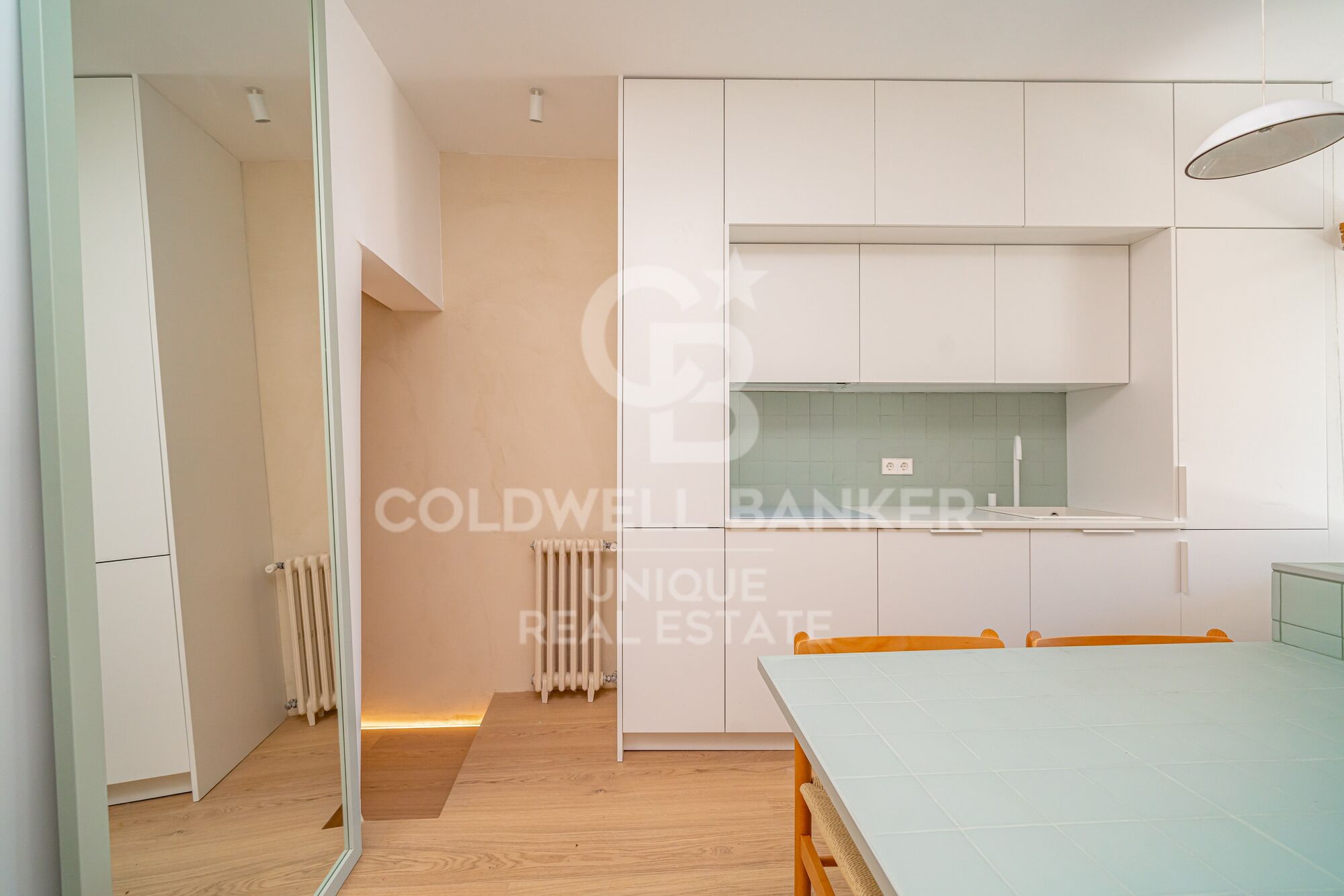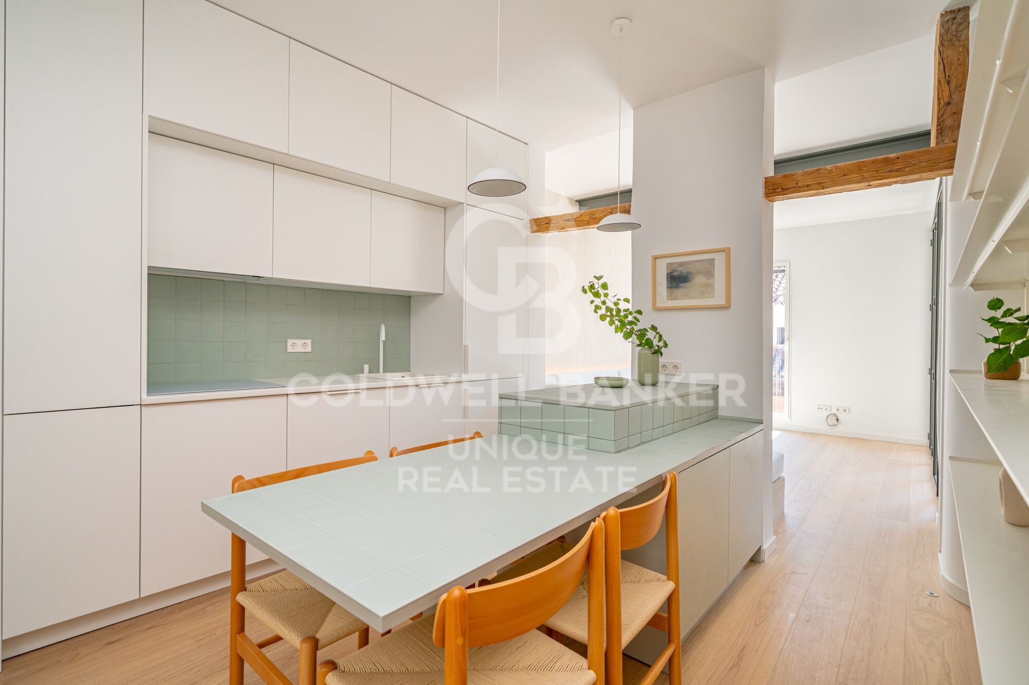 Situated on the third floor of an elegant 1880 building with a classic façade that reflects the historical character of the surroundings, this property offers 85sqm distributed across three bedrooms, two full bathrooms, and a spacious open-plan area that integrates the kitchen, dining, and living roomdesigned to maximize natural light and functionality.