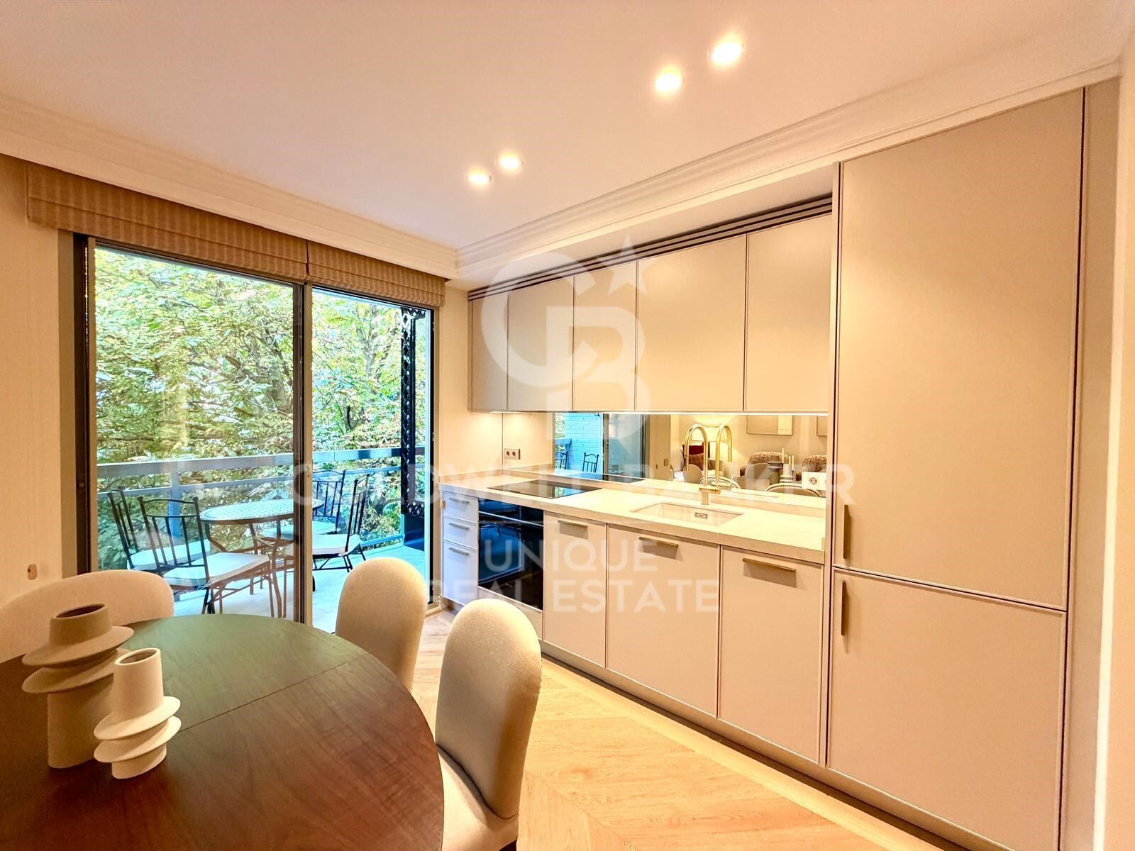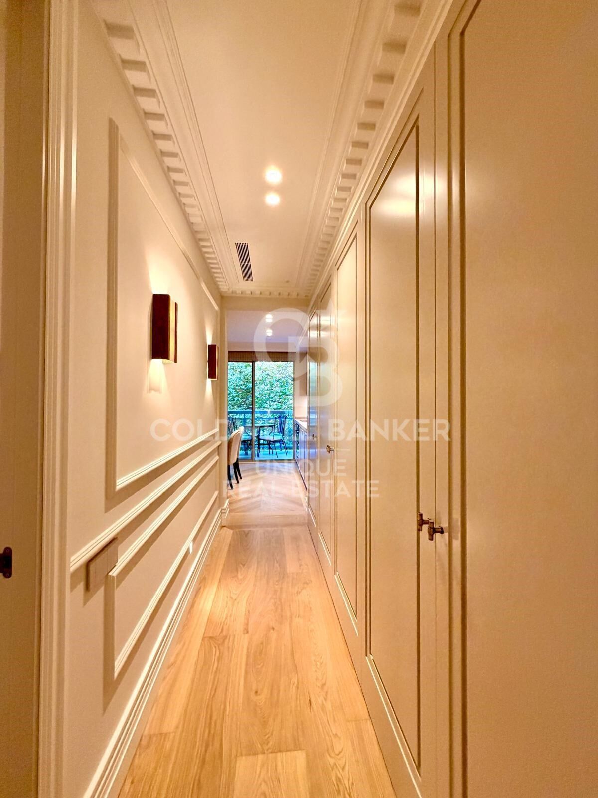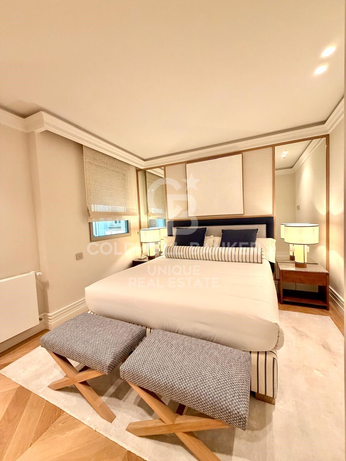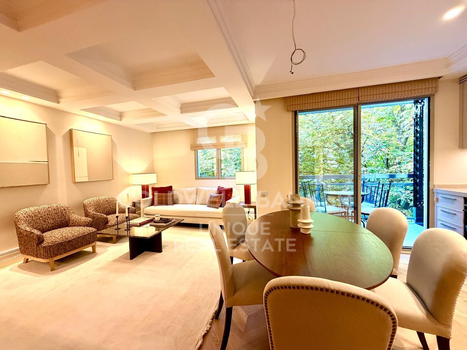 Situated on a bright second floor, this 90 m² property offers an elegant terrace with privileged views of the Serrano gardens.