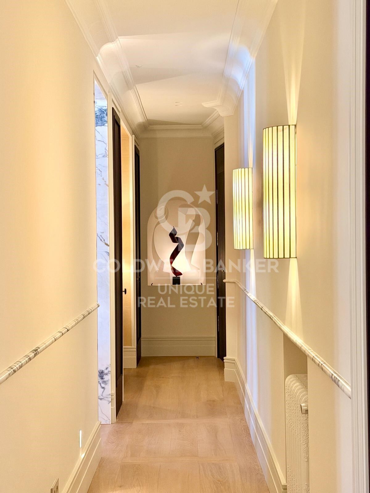 Coldwell Banker Unique presents this exclusive new build home located in the best area of Recoletos, between Serrano and Velázquez streets, a few meters from the emblematic Retiro Park. In one of the most coveted blocks of Madrid stands this building from 1882, completely renovated except for its historic façade, which has been preserved in its entirety as a tribute to its past. Behind it emerges a new work of a contemporary nature, where the dialogue between tradition and modernity becomes the axis of the architectural project. The building is articulated around a large central atrium that acts as a nucleus of light and communication, crossed by panoramic lifts that provide spaciousness, dynamism and a unique visual experience. The presence of water and the careful lighting envelop the space in a serene and sophisticated atmosphere, giving shape to a unique architectural concept, perfectly integrated into its surroundings and conceived to offer an exceptional residential experience. This luxury home, located on the top floor, stands out for the extraordinary luminosity of all its rooms and for the exquisite quality of its decoration. It is delivered fully furnished and equipped, with high quality standards both in design and execution, ready to move into. The day area consists of a spacious living room with an integrated and panelled kitchen, covered with a decorative vinyl that adds an elegant touch of distinction to the whole. The large windows and the charming terrace allow you to enjoy a pleasant connection with the outdoors and the nights of Madrid, making this space one of the great protagonists of the house. The sleeping area is distributed in three bedrooms, two of them en suite and a third with a separate bathroom located in the hallway. The master bedroom enjoys pleasant views of the rooftops of Madrid, providing a sense of calm and privacy in the heart of the city. The price includes two parking spaces with direct access, a storage room and all the furniture and interior design, valued at 800,000 euros, of the highest quality. This equipment includes high-end appliances, an integrated kitchen with decorative furniture and Dekton Laurent countertops, Bang & Olufsen and LG televisions, a high-tech Wi-Fi system, as well as furniture and decorative elements from renowned firms. The location offers all the services and amenities of a great capital. A few minutes' walk away are the Retiro Park, the Puerta de Alcalá and the Plaza de Colón, one of the most representative enclaves of the city and a key point of the Castellana axis. To the north extends the famous Golden Mile, an exclusive square kilometre that concentrates the most prestigious boutiques and luxury brands in Madrid. #ref:CBUQ1223
