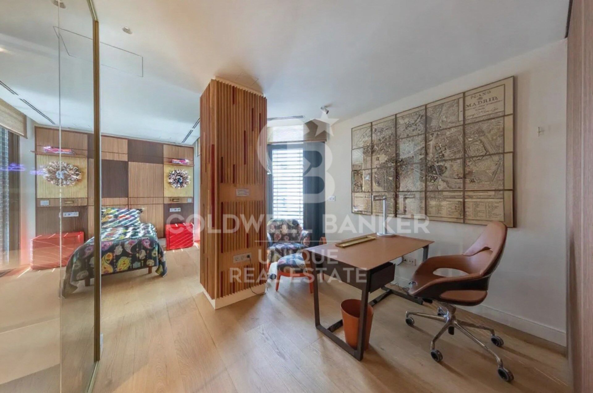 The sleeping area is distributed in three bedrooms, two of them en suite and a third with a separate bathroom located in the hallway. The master bedroom enjoys pleasant views of the rooftops of Madrid, providing a sense of calm and privacy in the heart of the city.