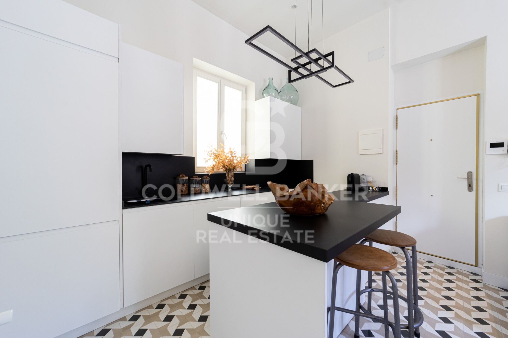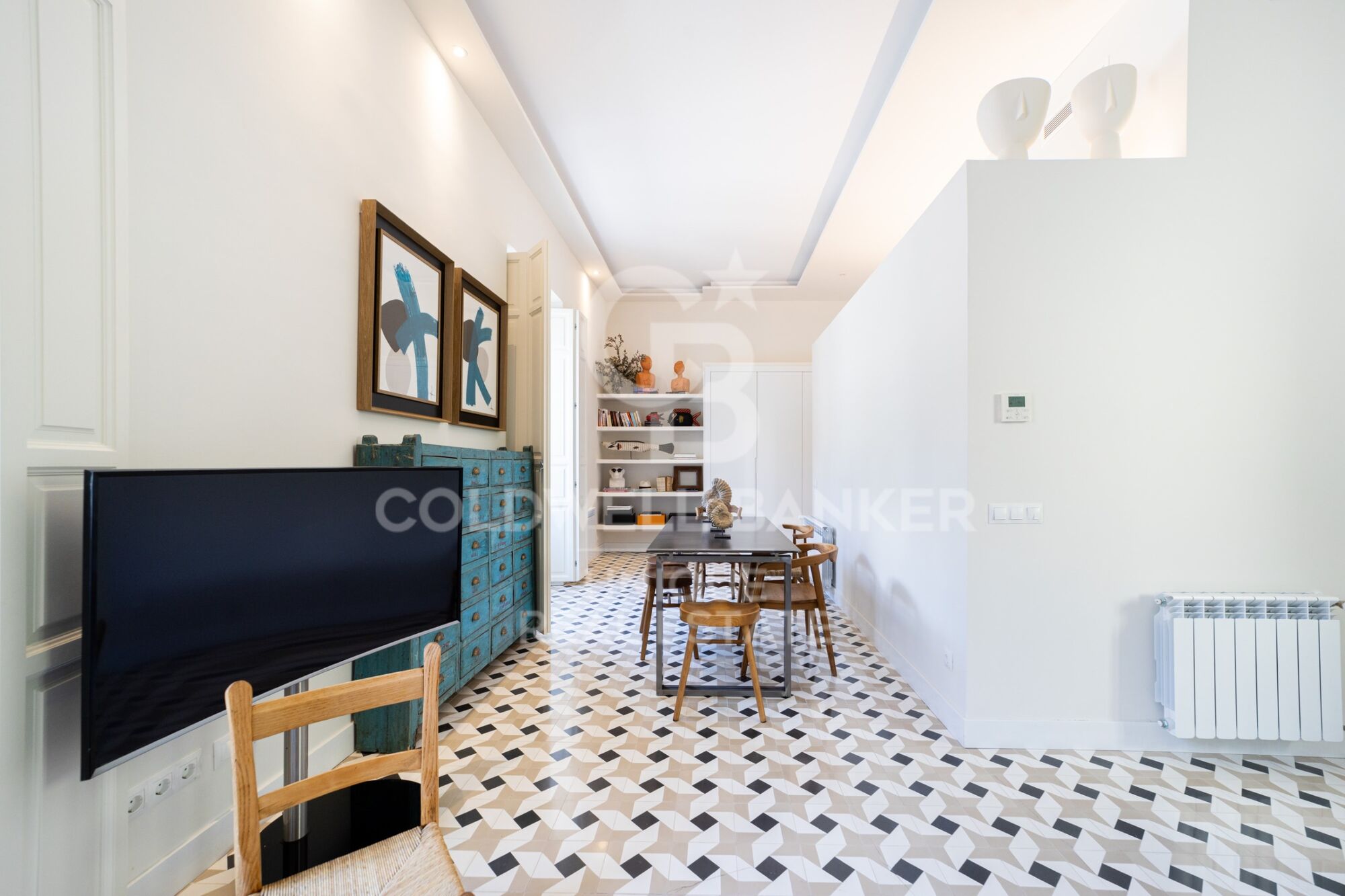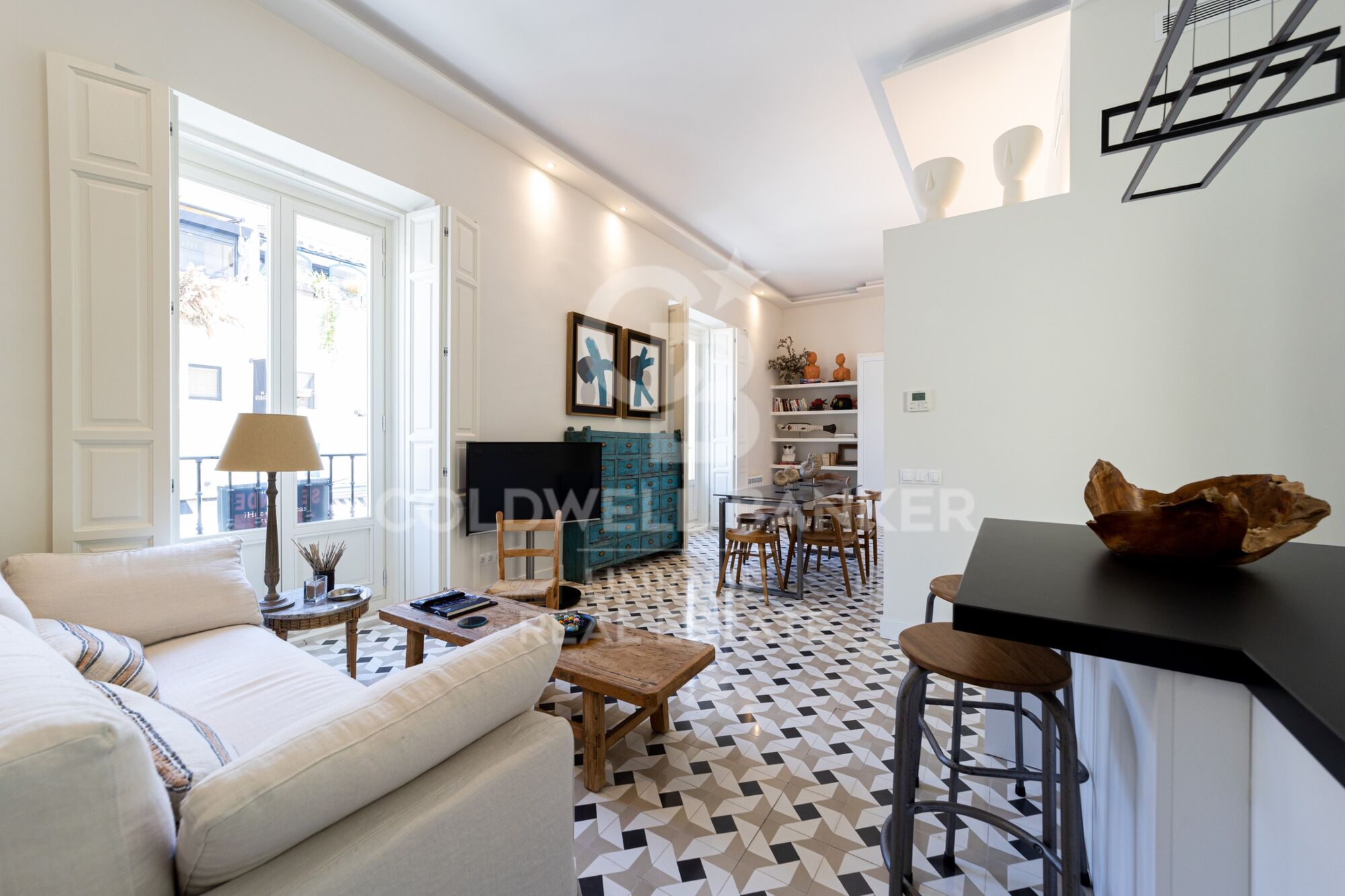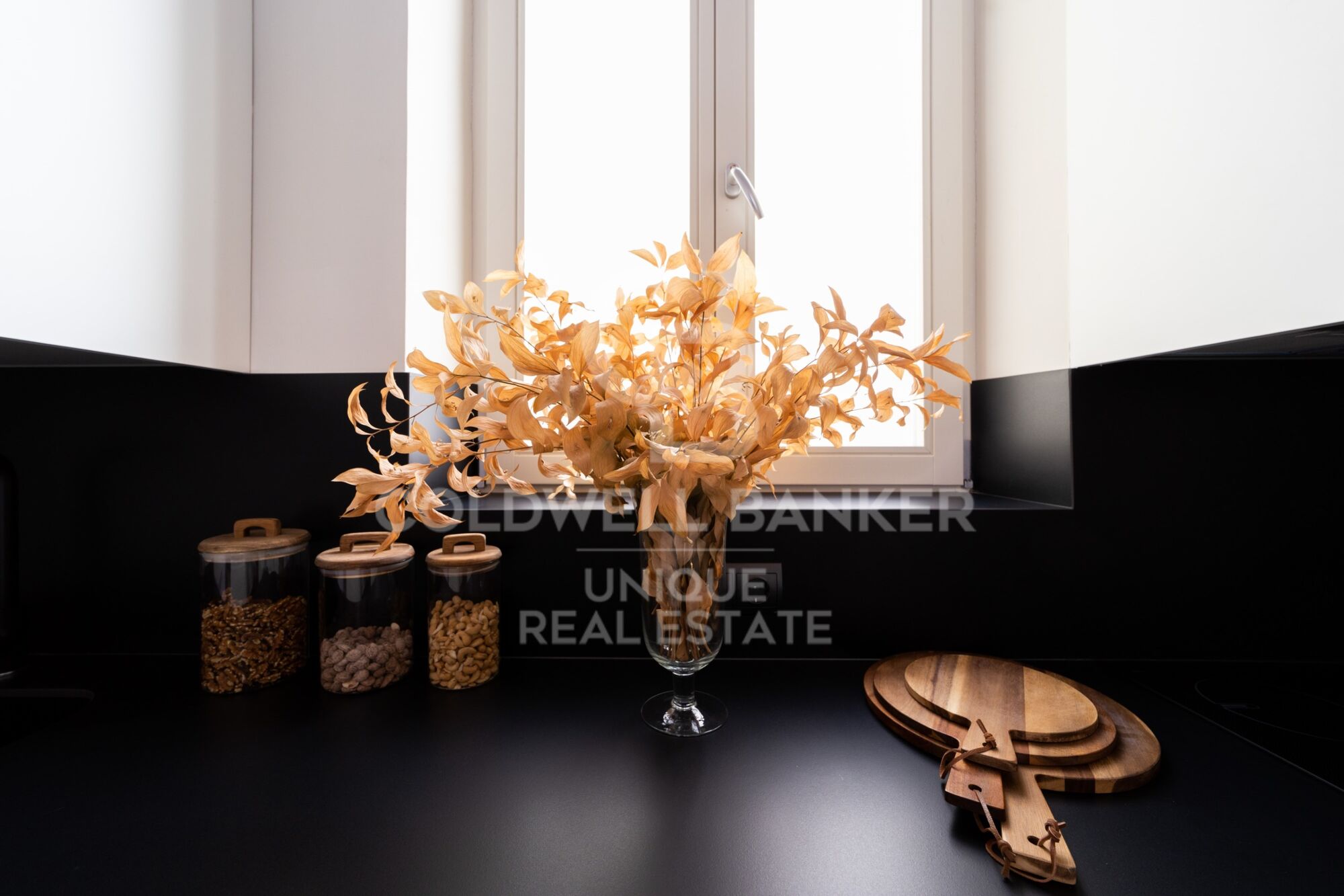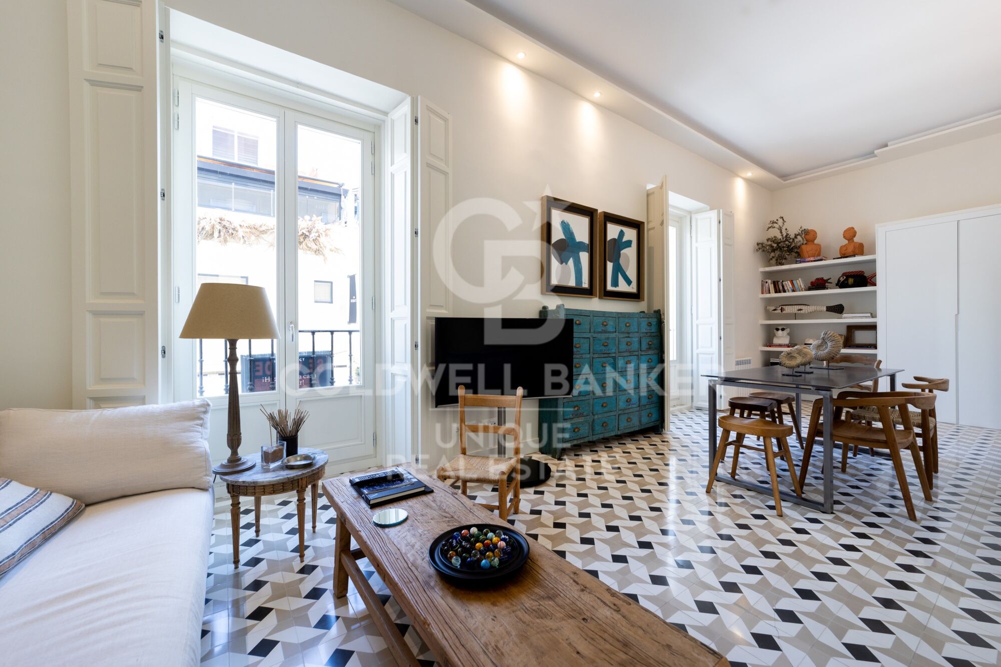 This elegant space combines an open plan design with a modern kitchen and a cosy living room that opens onto two balconies overlooking the charming alley of Jorge Juan, one of the most prestigious and coveted arteries of the city.