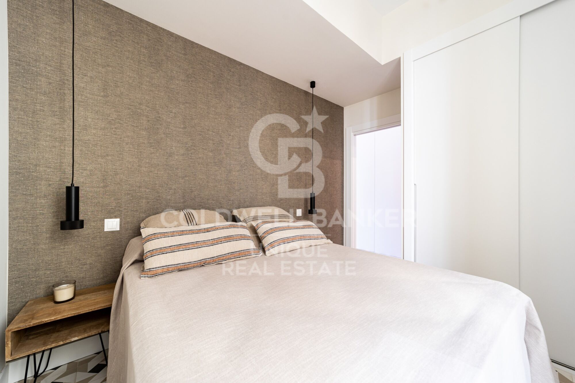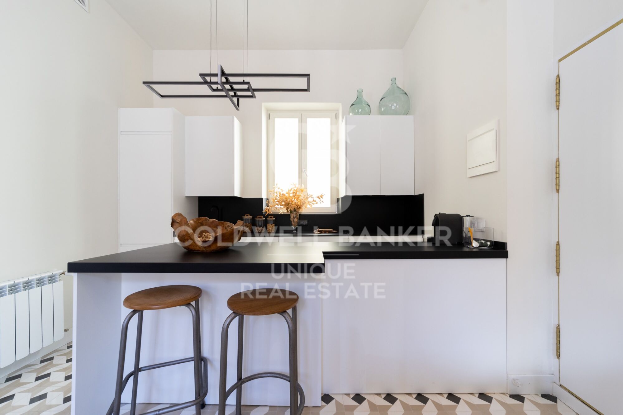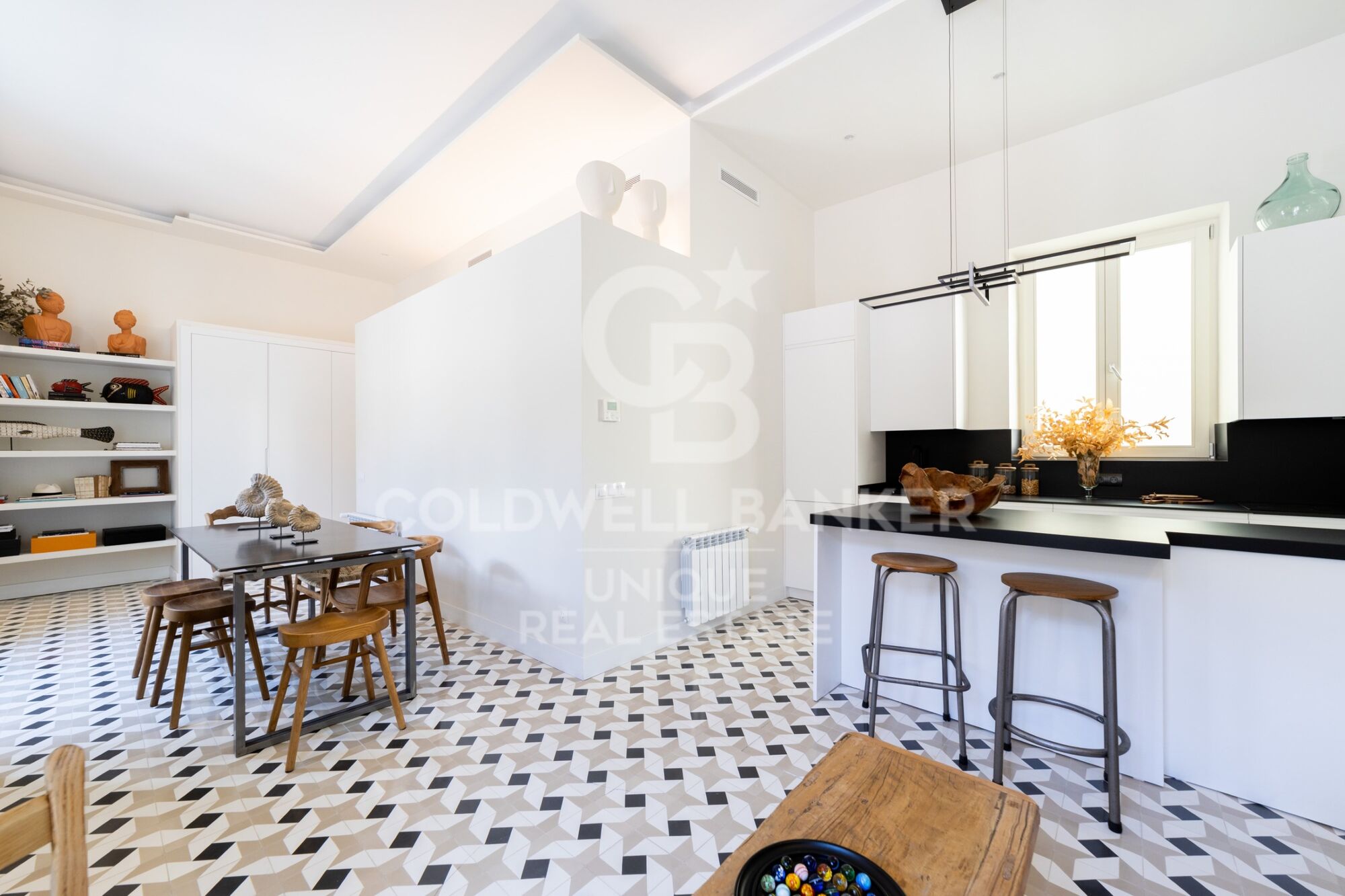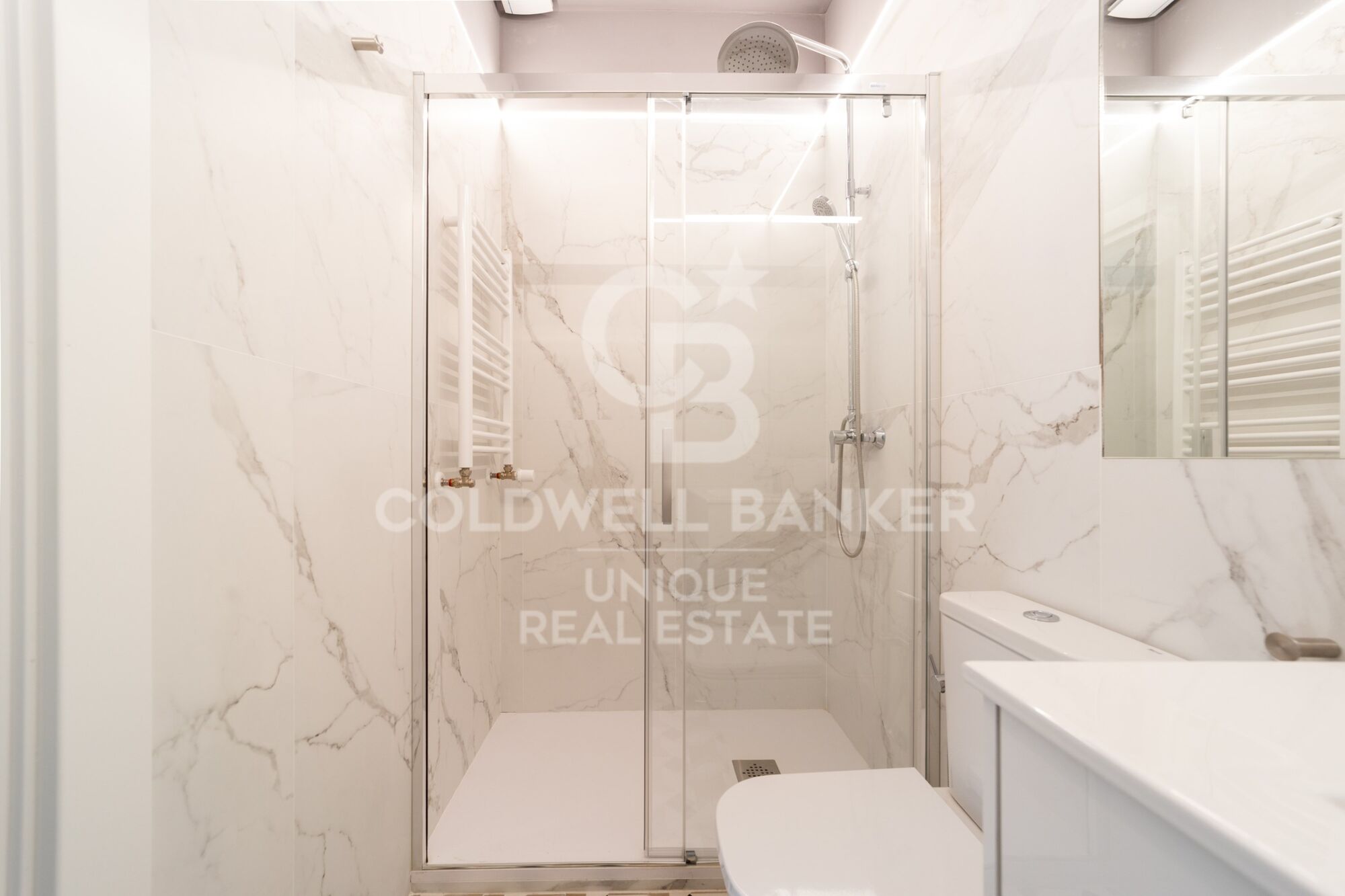 This elegant space combines an open plan design with a modern kitchen and a cosy living room that opens onto two balconies overlooking the charming alley of Jorge Juan, one of the most prestigious and coveted arteries of the city.