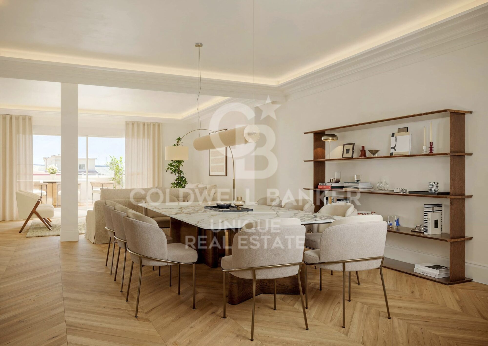 The penthouse perfectly combines the neighborhood's stately character with a contemporary and sophisticated renovation, where every detail has been carefully designed to provide comfort and elegance.