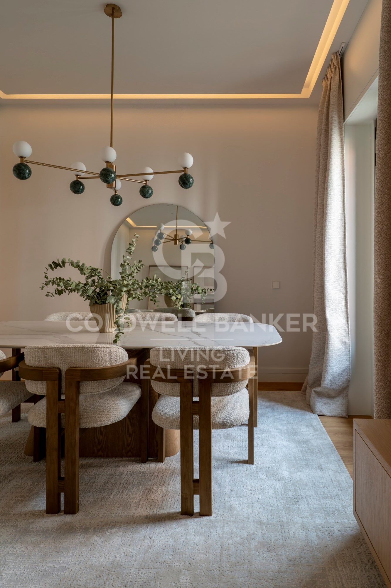 La vivienda, distribuida con gran coherencia y elegancia, se entrega totalmente decorada, lista para entrar a vivir, con una selección cuidada de materiales nobles, iluminación diseñada a medida y carpinterías artesanales de suelo a techo.