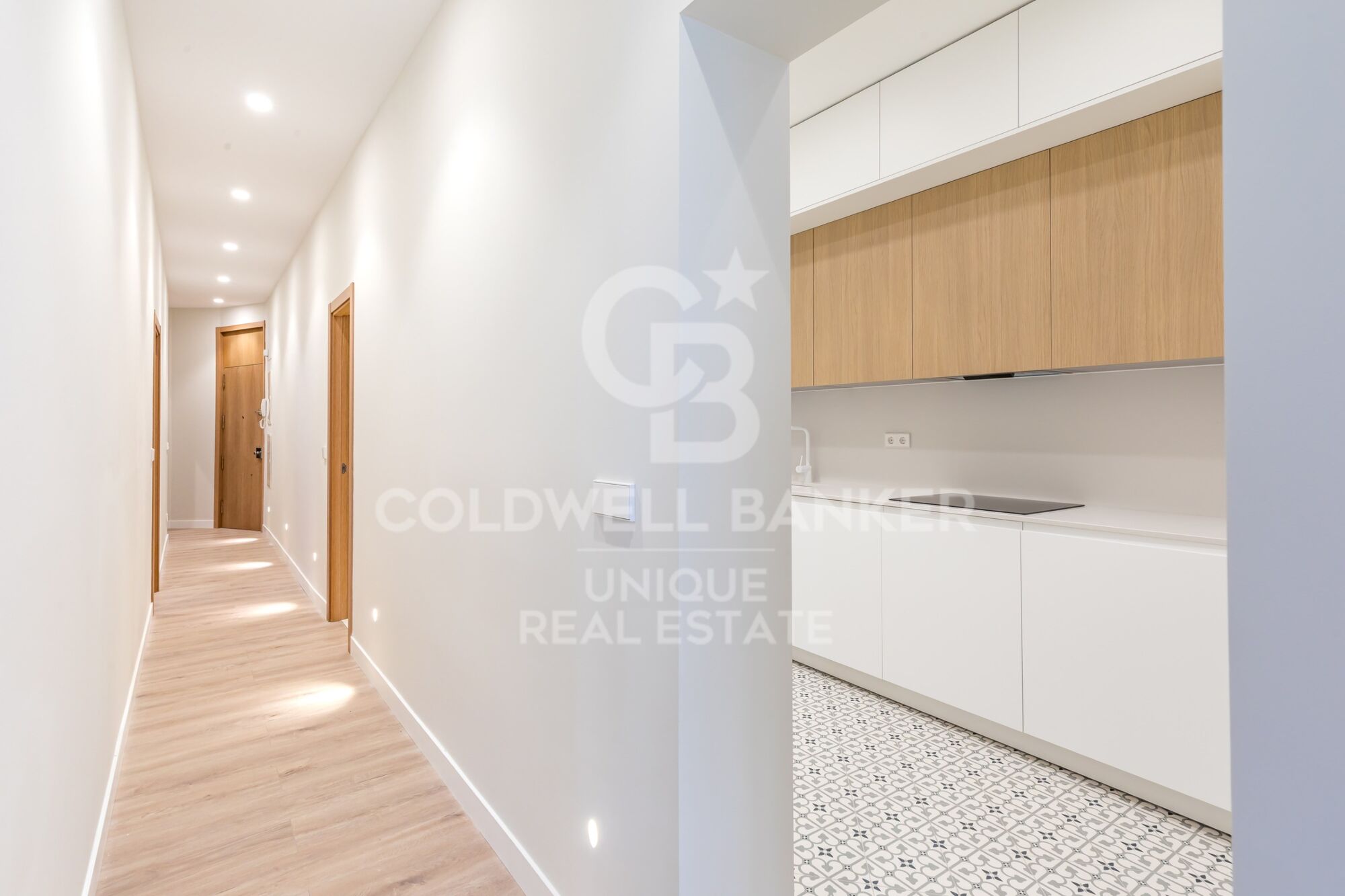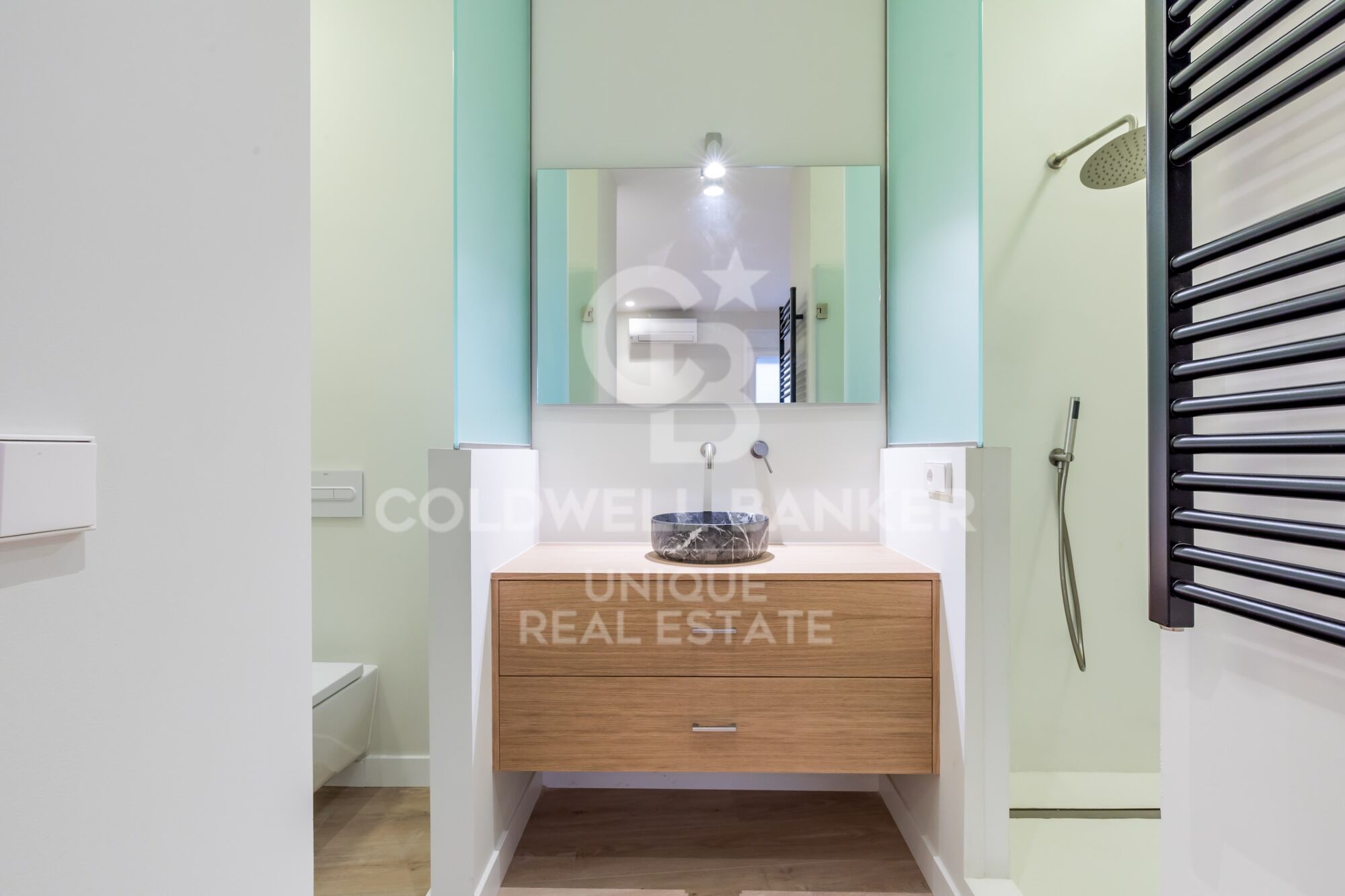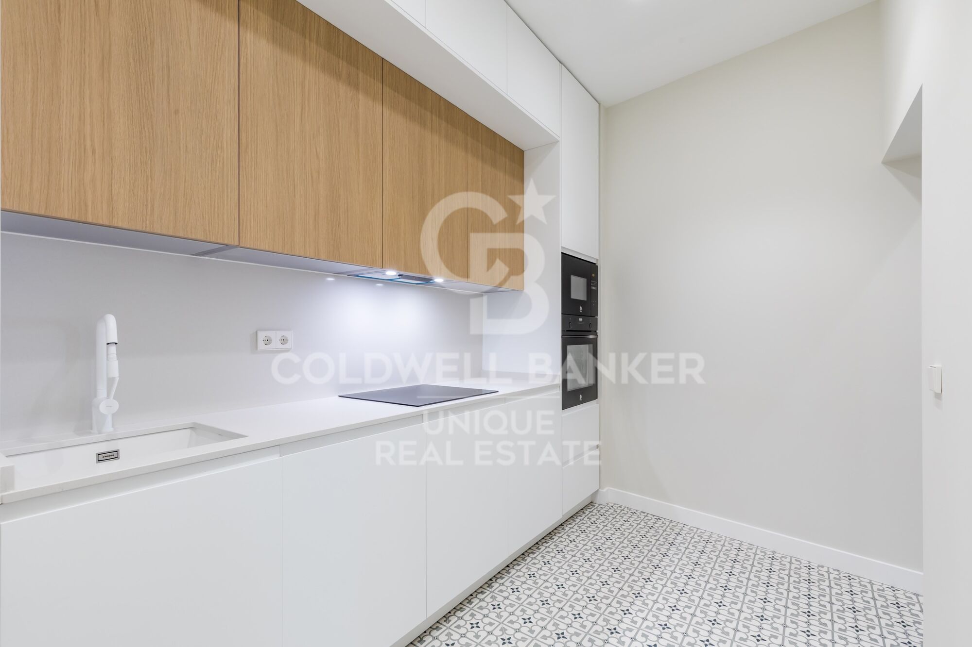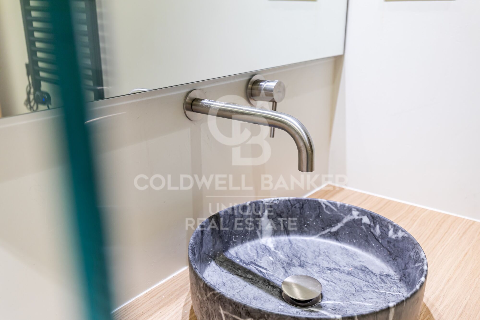 The house has been completely renovated and furnished with taste and top quality materials. It has a spacious living-dining room bathed in natural light, thanks to its three exterior balconies, which provide a pleasant feeling of spaciousness and connection with the city.