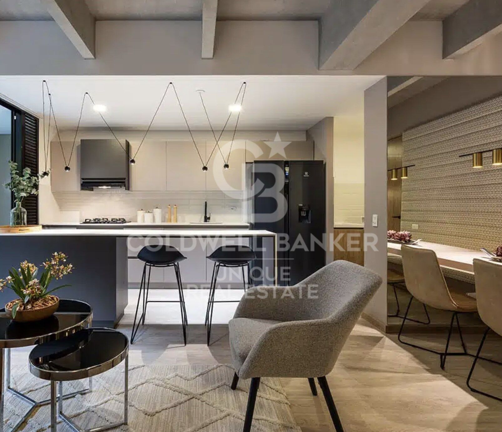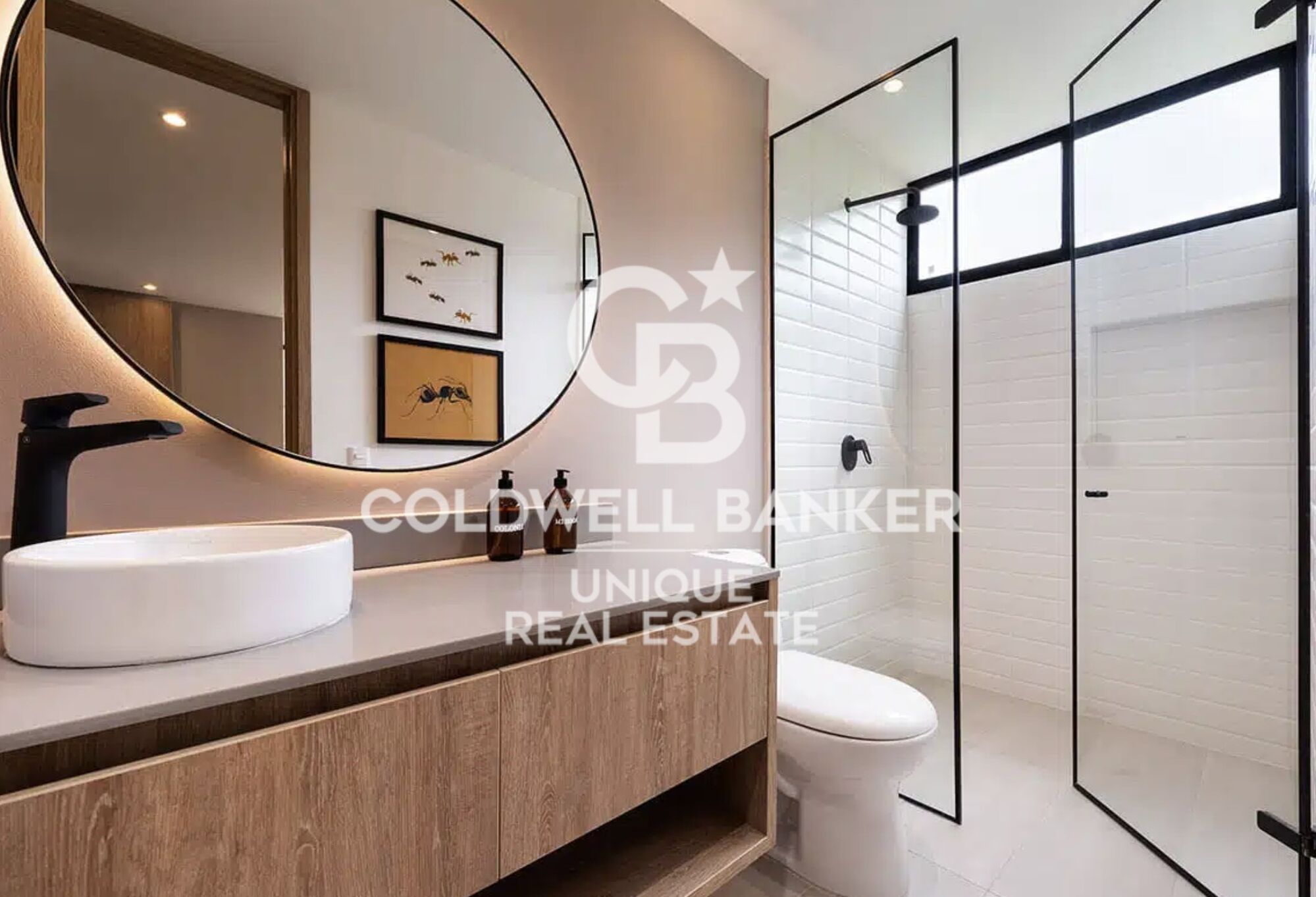 With an area of 180 m², the house has been renovated with great taste and character, combining contemporary design with elegant details that give it a unique personality. It has three spacious bedrooms and three bathrooms, one of them en suite inside the master bedroom, which also has a private dressing room.