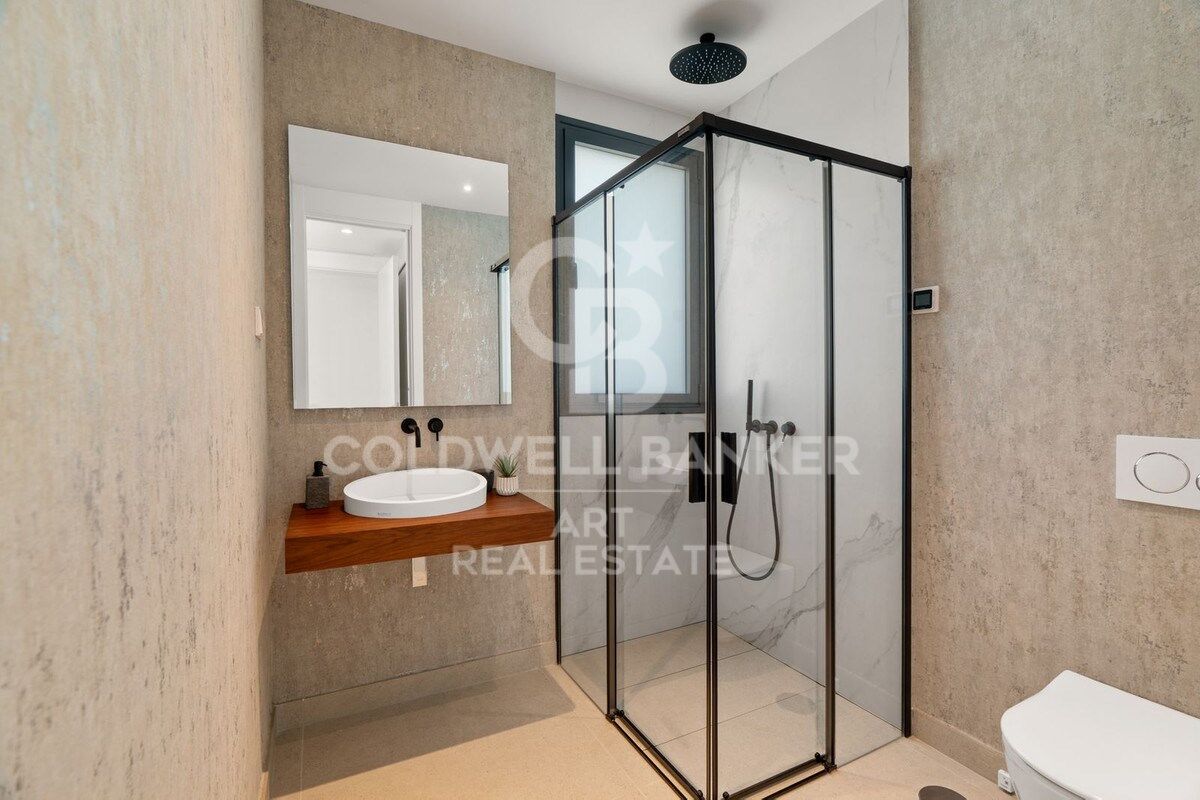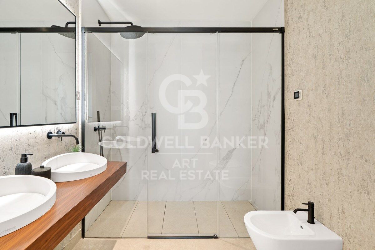 Located in one of the most privileged areas of Barcelona, near Plaza Francesc Macià, this high-end apartment offers a spacious and functional layout. The property covers 152.29 m², offering a master suite with a dressing room, two additional double bedrooms, a study, two full bathrooms, a guest toilet, a large living-dining room, and a fully equipped kitchen adjacent to the living room. In addition, it has a practical laundry area. This elegant apartment has been renovated with high-quality materials and luxurious finishes. The spaces have been carefully designed with a practical and intelligent layout that separates the rest areas from the kitchen and dining areas, providing unparalleled privacy. The large spaces, all with large windows, allow natural light to flood every corner, creating a bright and welcoming atmosphere. The living-dining room, with an area of 31.72 m², is one of the most pleasant spaces, with two large windows that flood the space with natural light, and the ceilings adorned with a plastered Catalan vault that adds a touch of classic elegance. The kitchen is equipped with the latest appliances, while the natural oak laminate parquet floors and the beige and natural wood tones bring warmth and comfort to every space. The bedrooms, away from the common areas, ensure a peaceful retreat. The master bedroom, with an area of 15.52 m², is a suite that includes a dressing room and a private bathroom. The high-quality finishes, such as the natural oak laminate parquet, provide warmth and elegance. The suite has custom wardrobes, lacquered doors, and minimalist-style windows with thermal break technology, ensuring comfort and energy efficiency. The two double bedrooms are spacious and bright, thanks to the large windows that allow natural light to enter. These bedrooms share a full bathroom equipped with matte black built-in taps, resin shower trays, and micro cement-effect porcelain floors, combining functionality with a modern and elegant design. With an individual heating system using aluminum radiators, the home offers a warm and cozy atmosphere in winter. In summer, the ducted air conditioning system, with a high-efficiency heat pump, keeps the space cool and comfortable. This versatile system allows the temperature of each room to be regulated independently, ensuring comfort year-round and reducing CO2 emissions. #ref:CBES2365