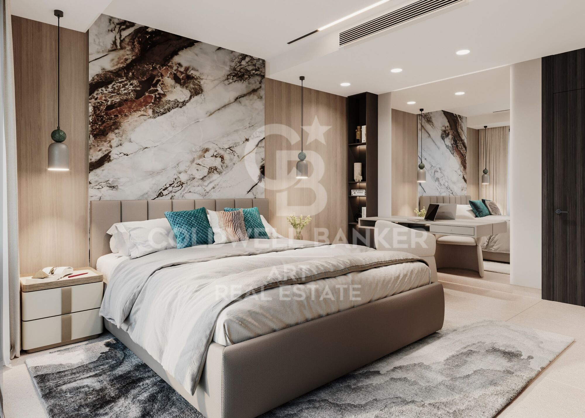 This exclusive complex is made up of 12 state-of-the-art apartments and penthouses, with 3 and 4 bedrooms, almost all with en-suite bathrooms, carefully distributed in two blocks to optimise the uninterrupted views of the sea and the mountains. Located in Cabopino, an area known for its spectacular beaches, considered the most beautiful natural beaches in Marbella, and its dune reserve of high ecological value, ARUNA is located in one of the most coveted locations on the Costa del Sol. Residents enjoy a variety of entertainment options and services nearby. The private development has a perimeter fence, green areas, a communal pool, sauna, gym and co-working area. It is located in a privileged enclave like Cabopino, offering unrivalled proximity to a wide variety of services and entertainment options on the Costa del Sol. For golf lovers, the Cabopino Golf course is just a two-minute walk away, and the Santa Clara Golf and Santa María Golf Club Marbella courses are also nearby, providing a unique experience for fans of this sport. Those looking to relax by the sea can enjoy exclusive beach clubs such as Nikki Beach, Siroko Beach Marbella and La Plage Casanis. Furthermore, the proximity to the Cabopino Marina offers the opportunity to practice nautical activities or enjoy yacht rides. Just a few metres away, nature lovers can explore the impressive Artola Dunes. Nearby beaches such as Artola-Cabopino and Calahonda, considered the best natural beaches on the Costa del Sol, are perfect for enjoying the sun and sea during the hot summer months. For families, the location is also ideal, with access to prestigious international schools such as The English International College and the German School, ensuring a high-quality education in a multicultural environment. #ref:CBSH137