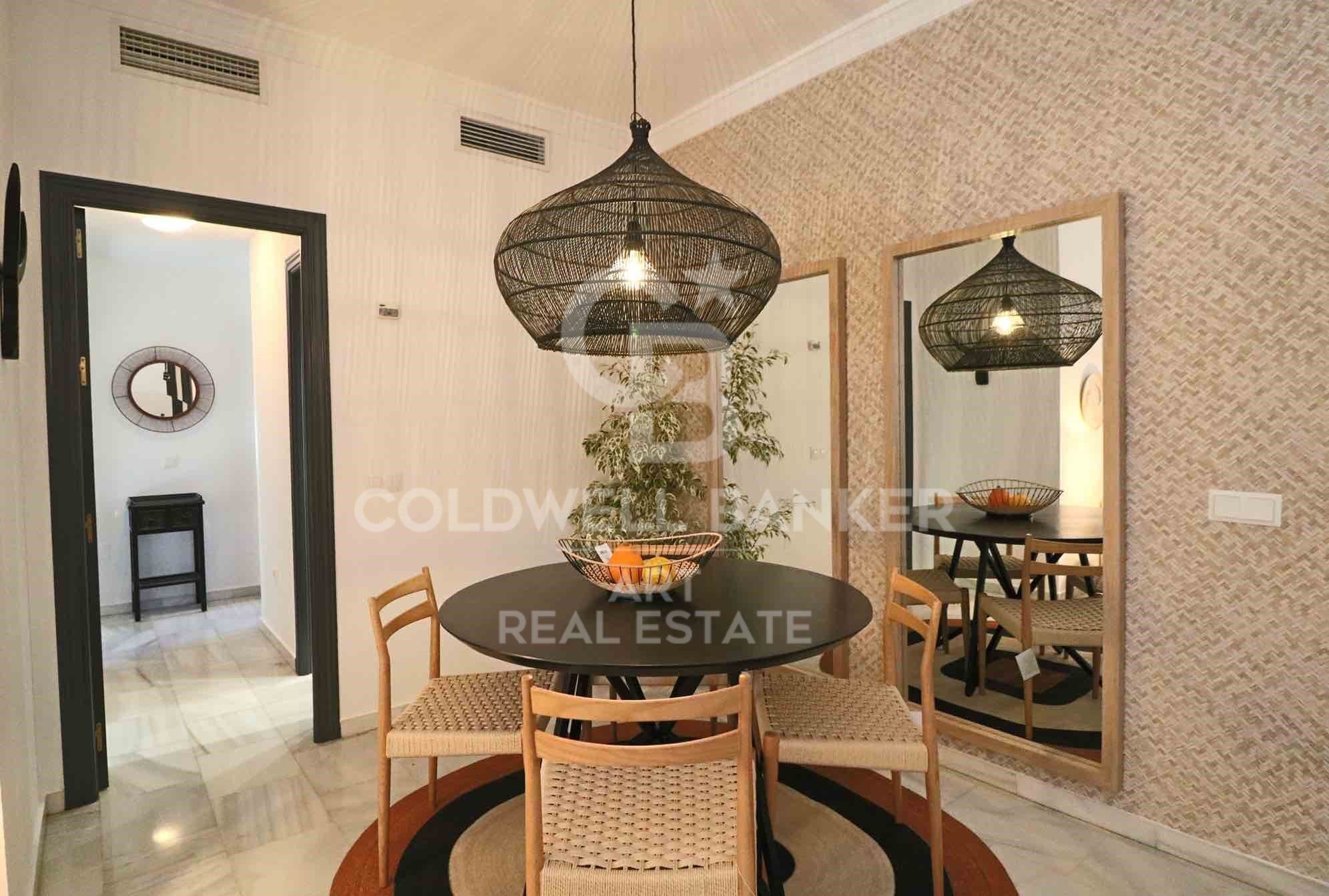 El apartamento cuenta con tres amplios y acogedores dormitorios. Los dos baños han sido renovados con acabados contemporáneos y equipados con todas las comodidades necesarias. La cocina, completamente equipada y el salón, lleno de luz natural, invita al relax y al disfrute, con una decoración elegante y mobiliario confortable que crean una atmósfera acogedora.