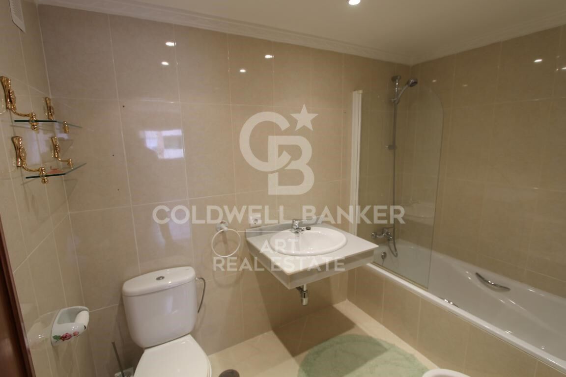 The layout features a large living room with direct access to a southeast-facing terraceperfect for enjoying the sun throughout the day. There are three spacious bedrooms and two modernised bathrooms, one of which is en suite. The independent kitchen is fully equipped and includes a separate laundry area, making it both practical and versatile.