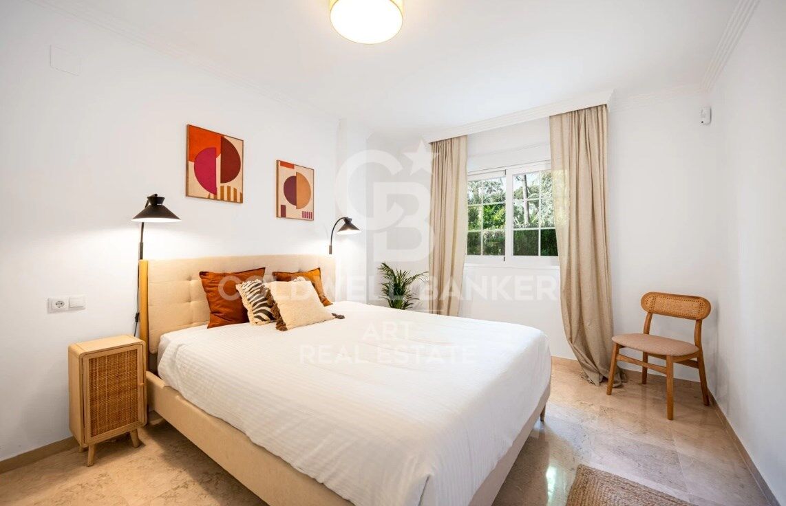 The Lomas del Río apartment is a beautifully renovated 3-bedroom, 2-bathroom residence offering 110 m² of refined living space, plus a 19.5 m² terrace. Completely refurbished in 2025, this elegant home combines modern design with comfort and tranquillity. Located in a serene community surrounded by lush nature and close to a first-class golf course, it enjoys peaceful views of the garden and pool, as well as partial sea views. It is sold fully furnished and equipped, ready to move in and enjoy immediately.