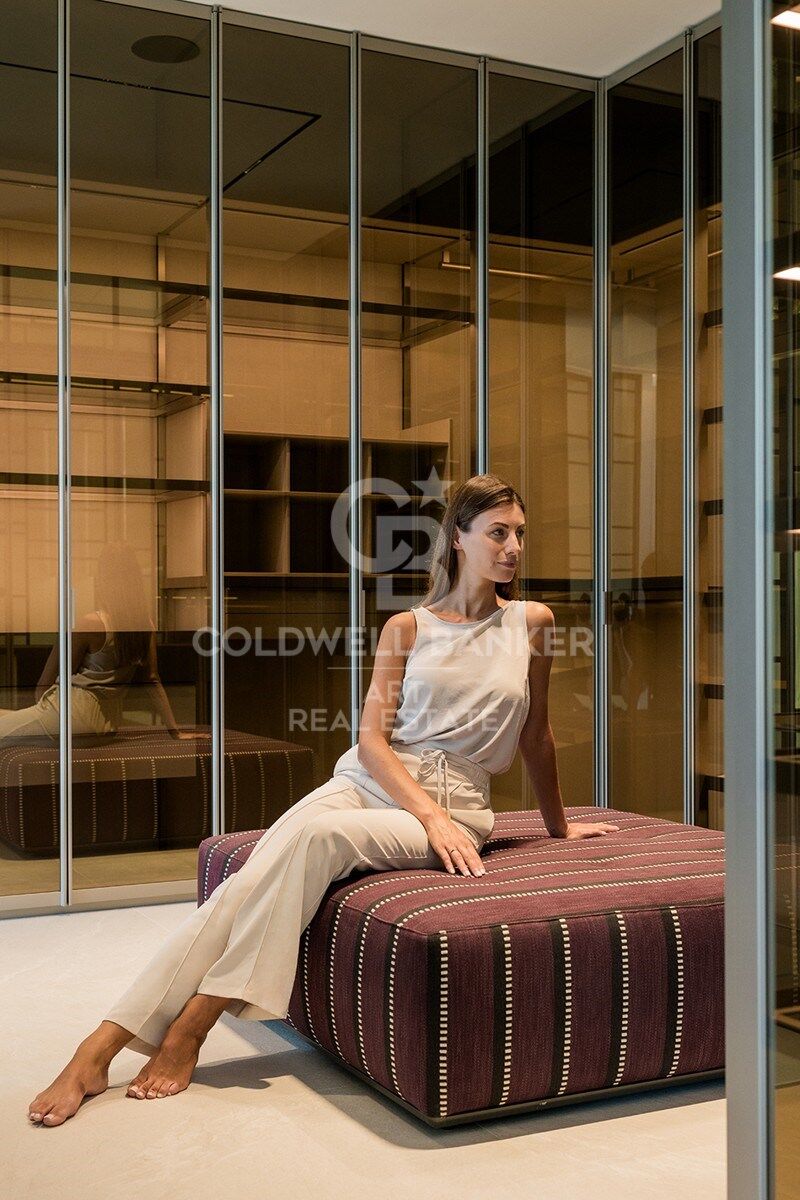 The villa has four spacious bedrooms, designed to offer privacy and comfort. The master suite, located on the second floor, features a spacious dressing room, a luxurious en-suite bathroom and a private terrace with panoramic views. Two additional elegant bedrooms with built-in closets are also located on this floor, while the fourth bedroom, located in the basement, offers maximum privacy.