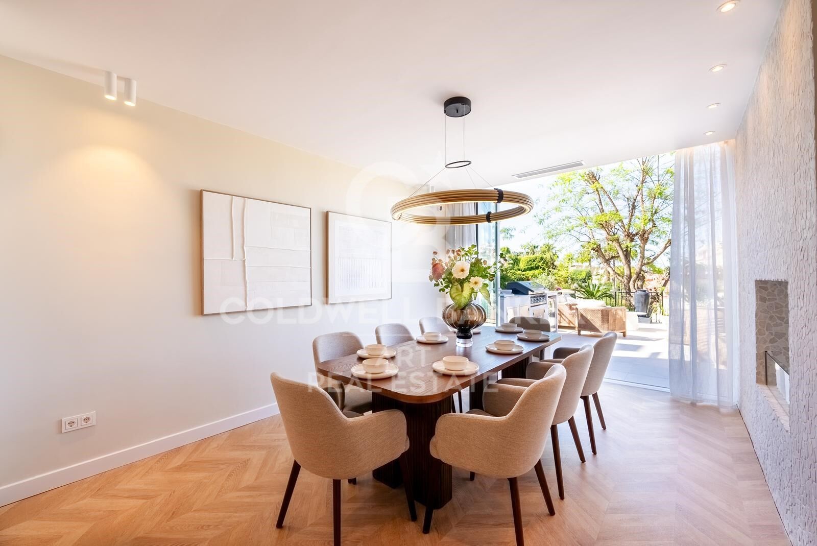 Built to the highest standards, the villa includes energy-efficient features such as an aerothermal climate system for sustainable heating and cooling throughout the year.