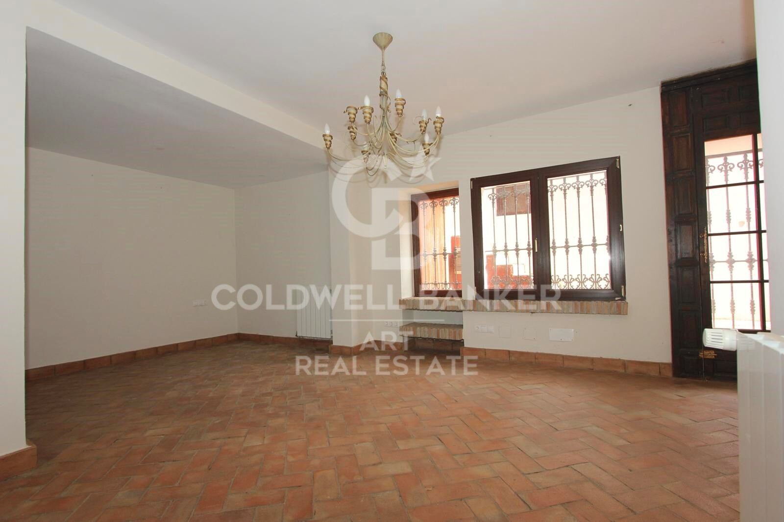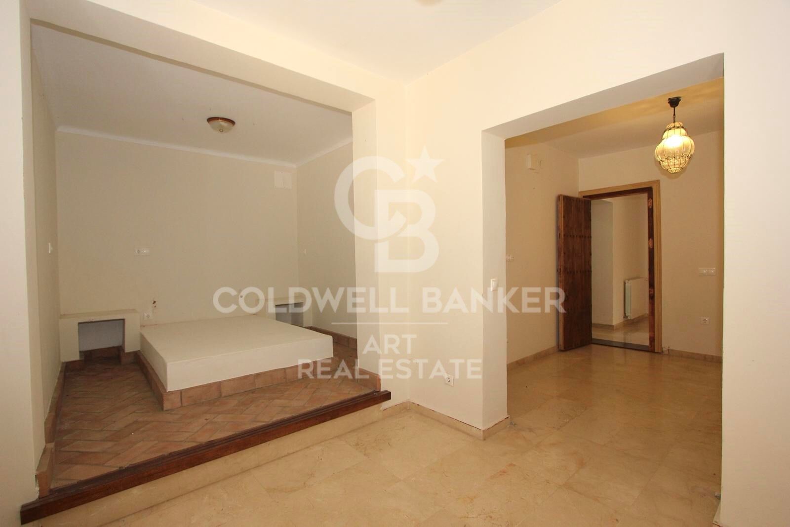 Upon entry, a welcoming patio with two majestic old trees leads to a bright entrance hall with stairs ascending to the spacious main living room. On the left side, you'll find a guest toilet and a large en-suite bedroom. On the right, a generous kitchen with integrated dining area, formal dining room, and another oversized bedroom with private bathroom, dressing room, and hammam.