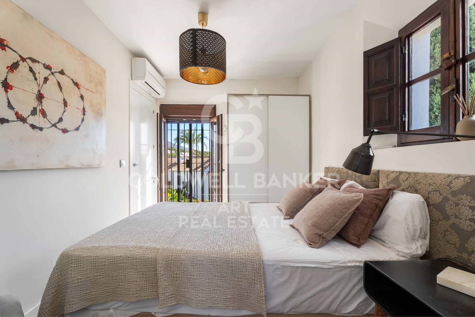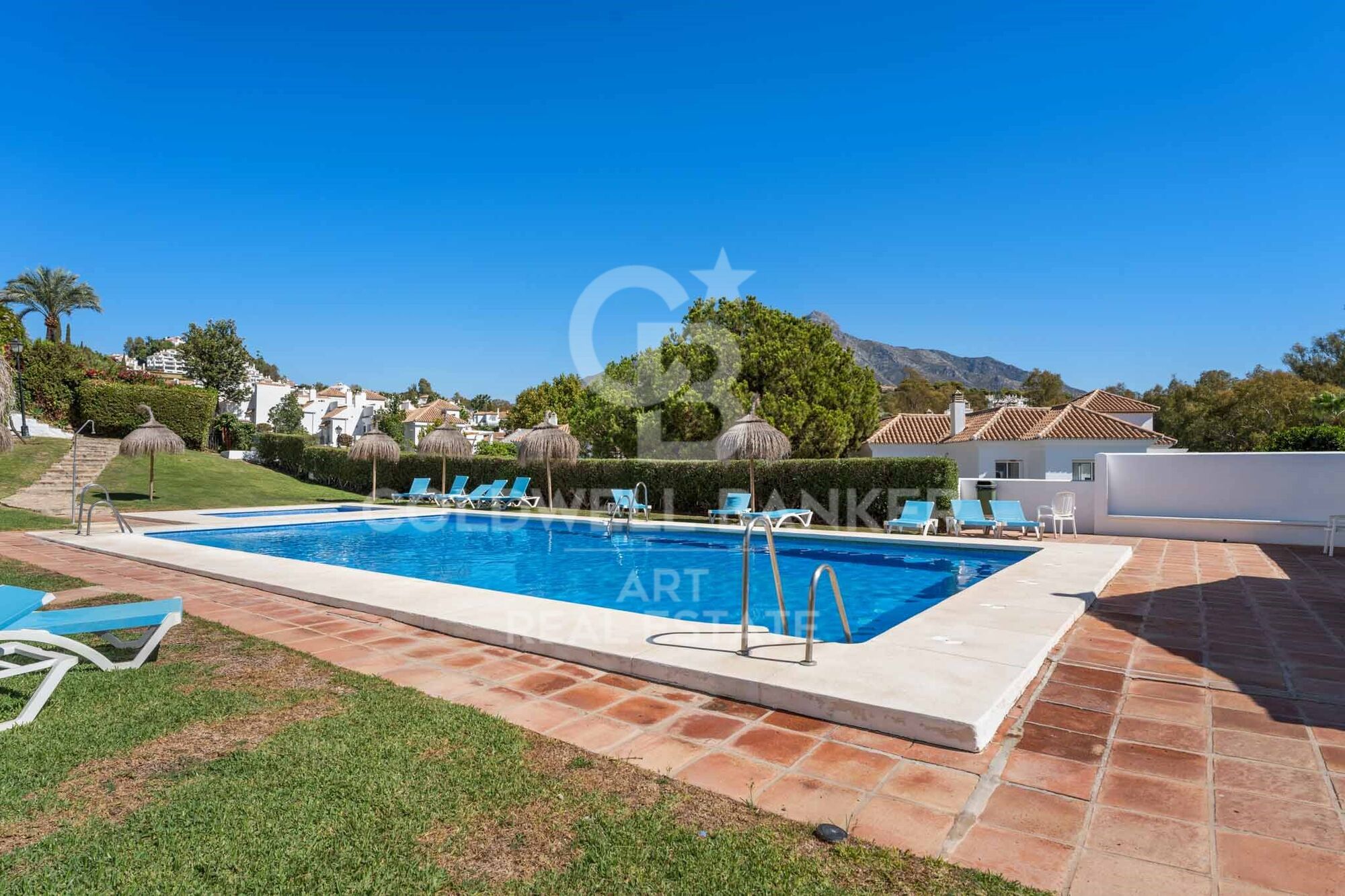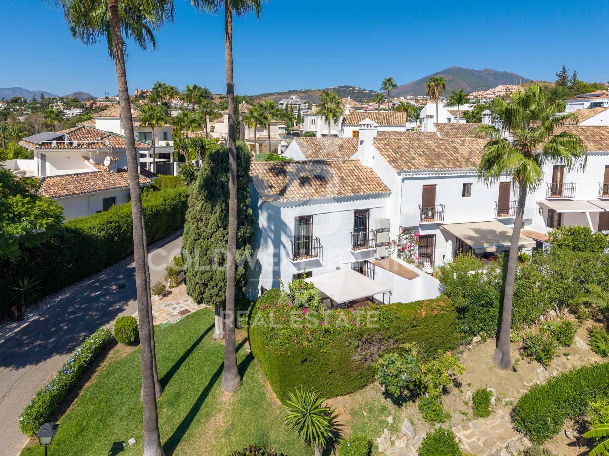Located in the heart of Aloha Puebloone of the most sought-after communities in Nueva Andalucíathis beautifully renovated townhouse blends authentic Andalusian character with stylish modern living. Fully refurbished in 2023, the property enjoys open panoramic views of La Concha mountain, Aloha Golf Course, and its serene lake, offering a peaceful and picturesque setting in Marbella's prestigious Golf Valley. The home is spread across three levels and features a variety of outdoor living spaces. On the main floor, a 13m² terrace provides the perfect spot for alfresco dining or a quiet morning coffee. The 47m² rooftop terrace is ideal for sunbathing or entertaining, while the lower level opens to a private 40m² garden, offering a tranquil green retreat with direct access from the bedrooms. Inside, the main level offers a bright open-plan living area with a cosy fireplace and large windows that create a seamless transition between indoor and outdoor living. The adjacent kitchen is fully equipped and includes a breakfast bar with sleek finishes, designed for comfort and functionality. The lower floor comprises two spacious en-suite bedroomsone with a bathtub and the other with a walk-in showereach with direct access to the garden. These spaces provide privacy, comfort, and a strong connection to nature. Residents of Aloha Pueblo enjoy a charming village atmosphere, with whitewashed façades, cobbled streets, and vibrant communal life. Amenities include a large swimming pool, landscaped gardens, on-site cafés and restaurants, and a secure underground parking space. Just a short drive from Puerto Banús, Marbella's beaches, top-rated international schools, and world-class golf courses, this home is a prime choice for year-round living, a holiday getaway, or a high-potential investment property in a privileged location. #ref:CBSH970