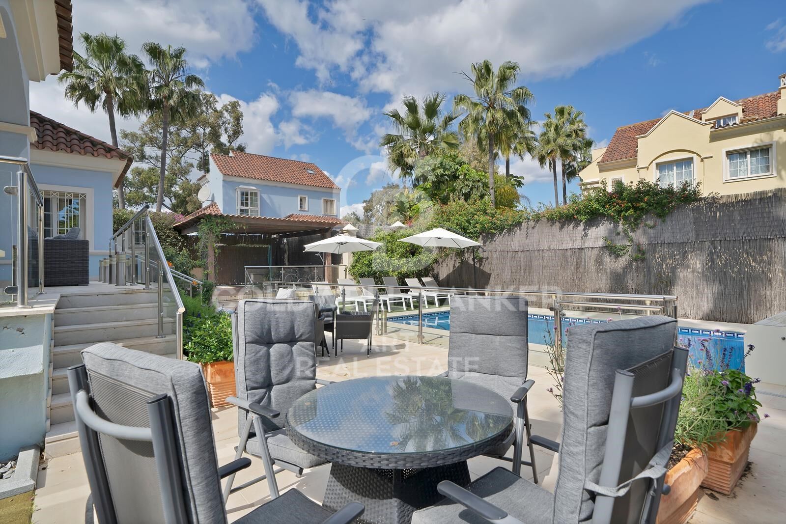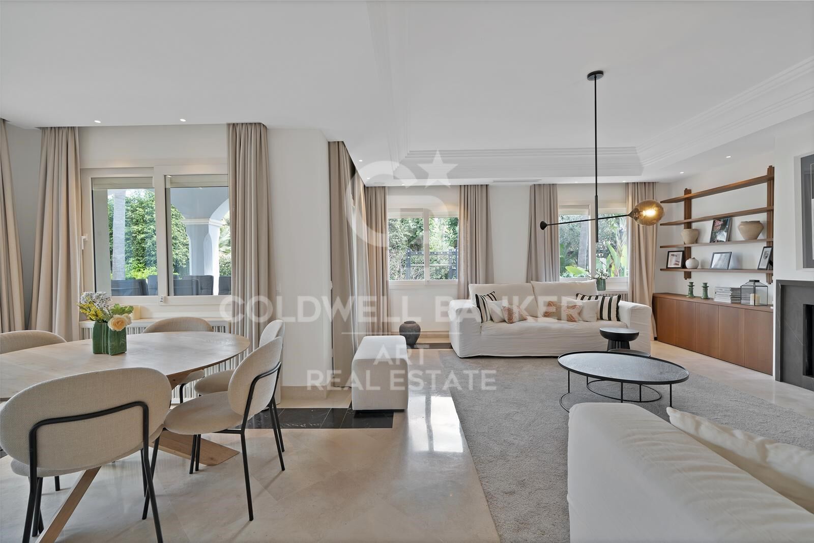 Designed for effortless indoor-outdoor living, the villa features a private heated swimming pool, landscaped garden, and an outdoor gym, ideal for enjoying Marbella's coastal lifestyle. Inside, a home cinema creates a cozy entertainment retreat, while a carport for two cars adds convenience and security.