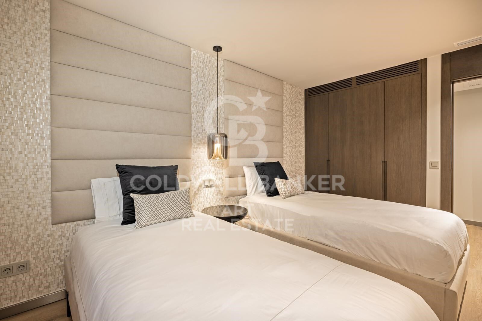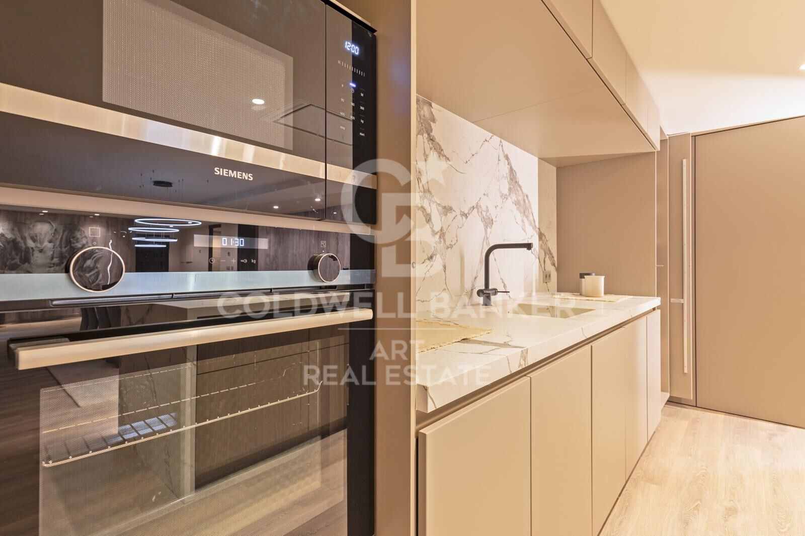 Located in a fully renovated building (2019/2020), this 570 m² apartment plus a 76 m² terrace (a total of 646 m²) redefines the concept of exclusivity, design, and comfort in one of the most prestigious areas of Barcelona. The property has been recently refurbished with top-quality finishes and comprises: Common areas: living room with a gas fireplace, dining room, office, and a kitchen designed by Deulonder Additional spaces include an office, laundry room, courtesy bathroom, and service entrances. A large master suite with dressing rooms and a private bathroom, three additional suite-style bedrooms, a sitting room, and a service room with its own bathroom. Large 76 m² terrace all around the flat. Two storage rooms (one 10 m² and another 20 m² with a bathroom). The property has three parking spaces: one double indoor and two outdoor spaces. Electric Wallbox charger. 1 indoor parking space for a motorcycle. Ground floor area for bicycles and electric scooters. Building services and facilities 24-hour concierge service, 365 days a year. Security system with alarms and CCTV cameras. Property facilities and amenities Comfort and technology: underfloor heating, air conditioning, complete home automation, Wi-Fi, and multiroom speakers (Heos system) throughout the property and terrace. Bathrooms and premium details include towel warmers in the shower walls, a water softening system, reverse osmosis, and wide-plank oak parquet flooring. There is also an alarm system and CCTV. Costs and services Annual property tax (IBI): €7, (phone hidden) Community expenses: €30,000 per year. Services connected: electricity, water, gas, and telephone. This property combines luxury, comfort, and an unbeatable location, making it a unique opportunity for those seeking an exclusive home in Barcelona. Ready to move in! #ref:CBES2433