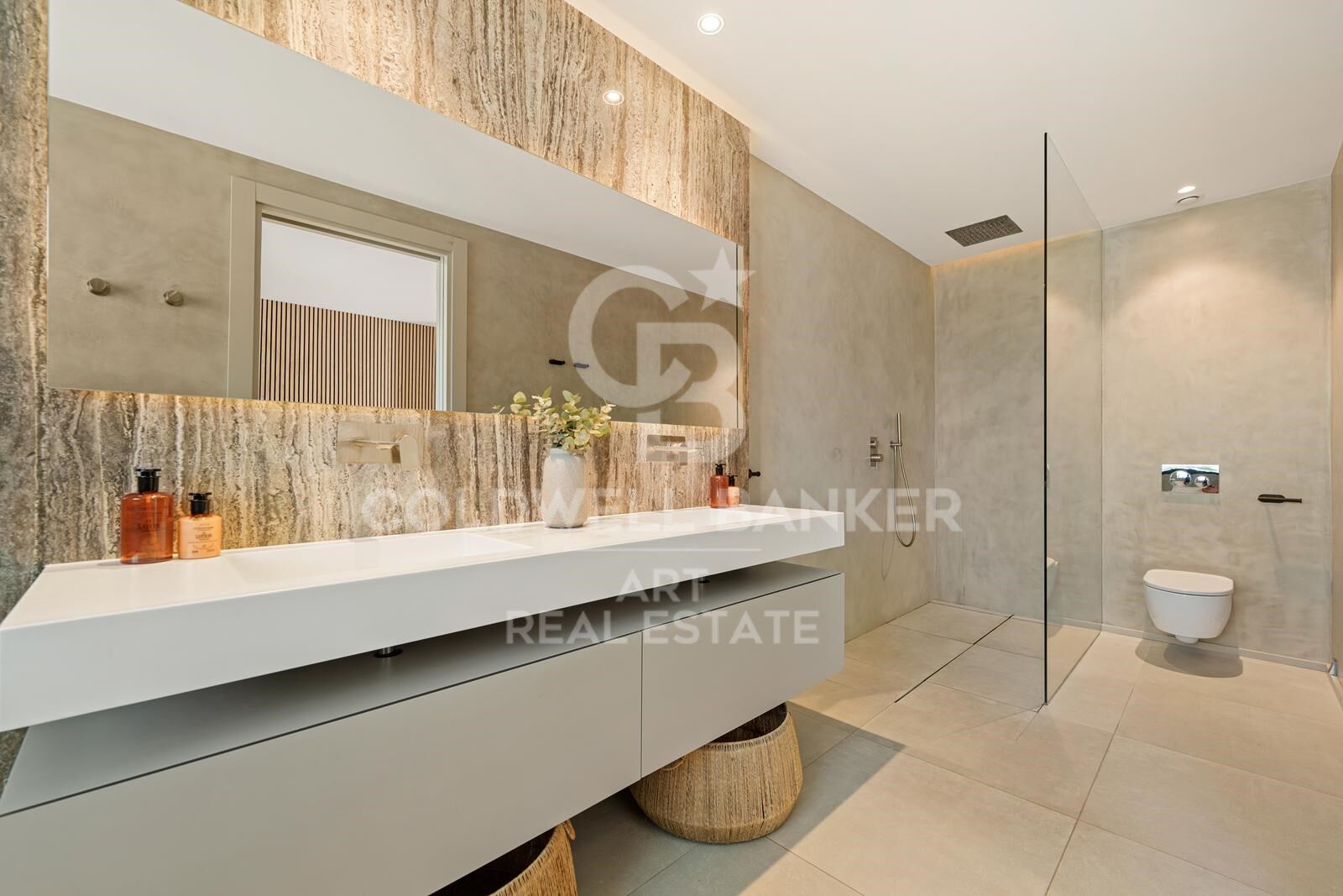 The aerothermal system provides heating, cooling, and hot water with maximum energy efficiency, allowing personalized temperature control in every room. Smart home automation enables comprehensive management of climate, lighting, blinds, and other systems, offering a comfortable and fully connected environment.
