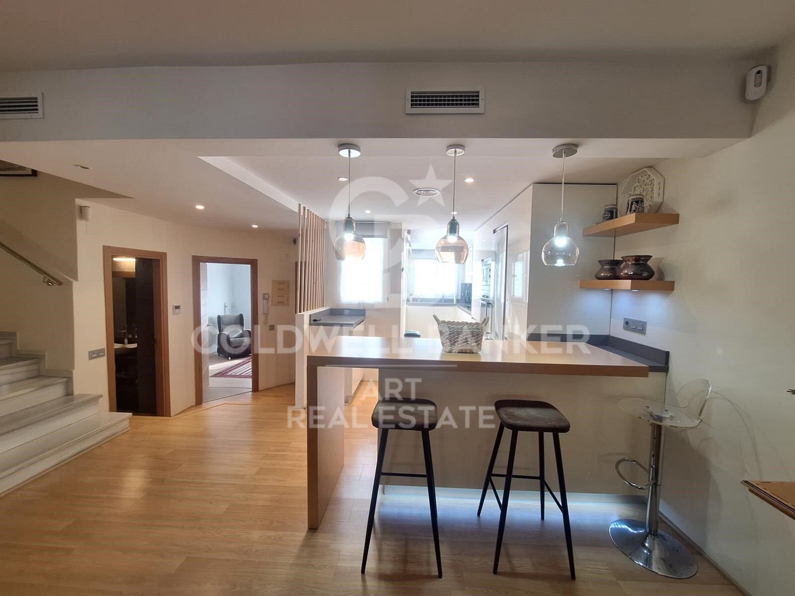 This modern and bright villa has 4 bedrooms, 2 bathrooms and 1 toilet, built with high quality materials. The house is equipped with air conditioning and heating in all rooms, fitted closets and a fully equipped kitchen. It also has a large private garden, terraces on the second floor and an incredible solarium with stunning views.