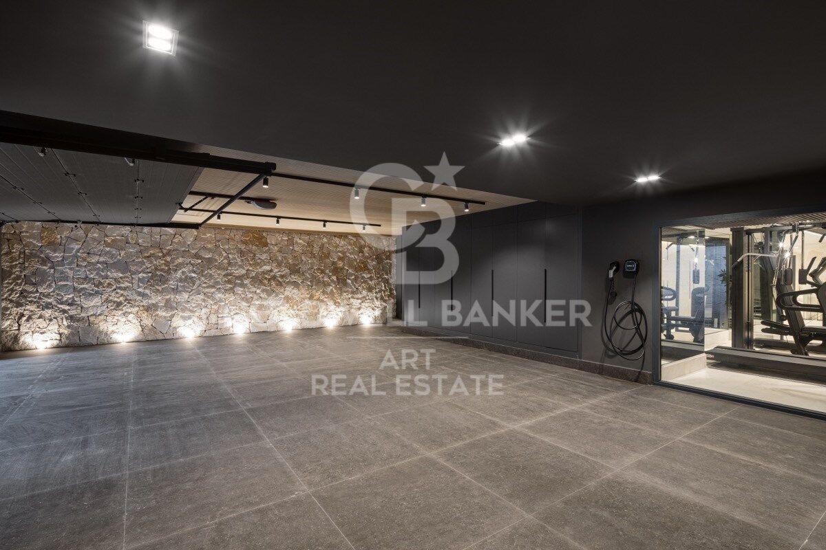 On the lower level, residents can enjoy a range of high-end amenities, including a private spa with indoor pool, sauna, and Turkish bath, as well as a cinema and entertainment room. A private garage with space for three cars, accessed via a private driveway, completes the home.