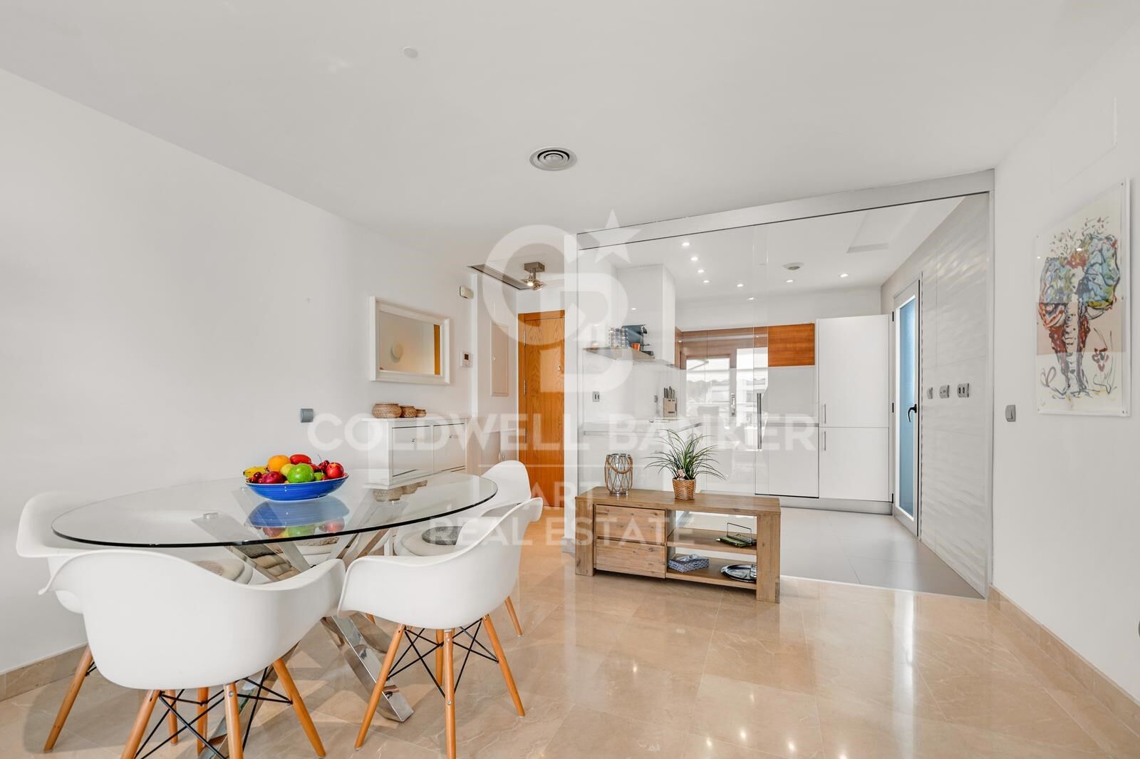 El salón comedor es luminoso y acogedor, con acceso directo a terrazas privadas que amplían el espacio hacia el exterior.