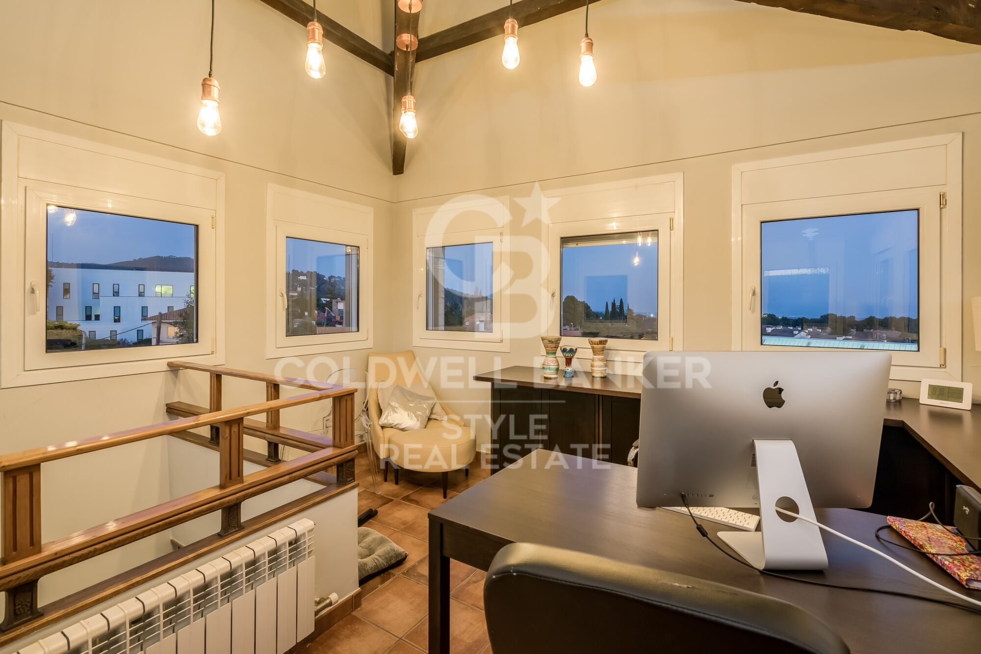Going up the stairs that are in the same corridor we go to a tower where the office with 360º view is located with views of the sea of Barcelona and also to the mountain of La Mola where you will feel surrounded by a wonderful landscape to spend hours working in the office. This also overlooks a large terrace overlooking the village and the mountains.