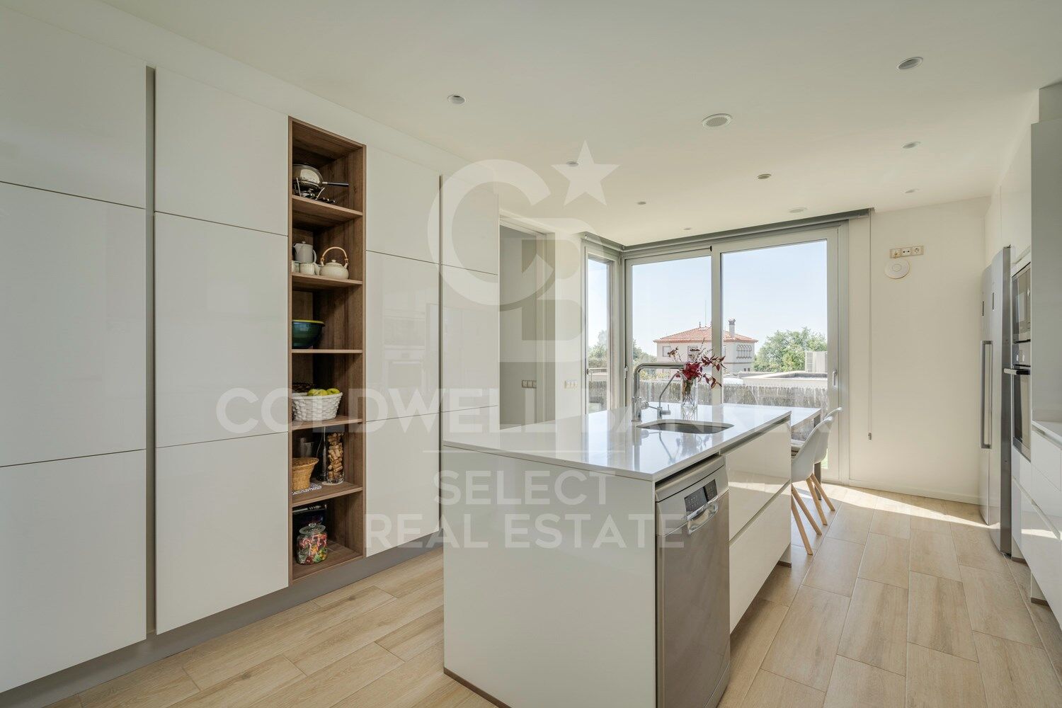 The main floor consists of a cosy hall that leads us to the day area where we find a large dining room with direct access to the garden, as well as a large kitchen. It is noted that the spaces are decorated with exquisite taste.