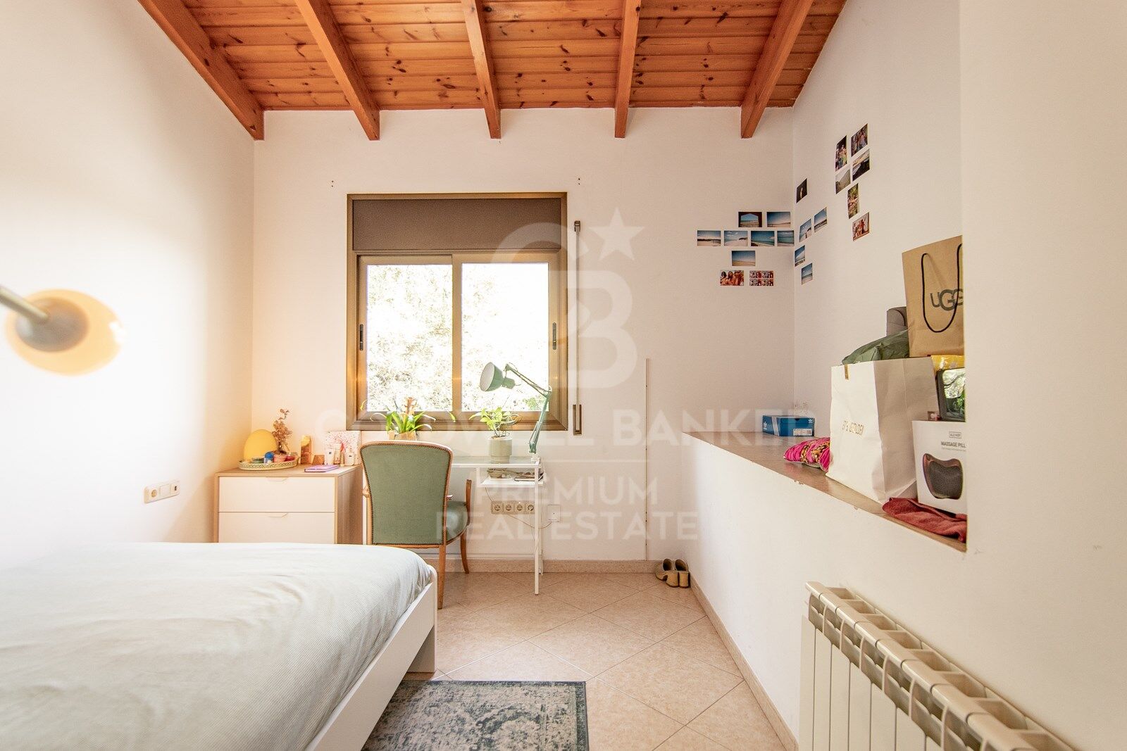 There are spectacular views of the entire mountain of La Mola, which is a natural park, and the whole of Matadepera. The garden that surrounds the entire house is more than 1500 m2 and has two different spaces. On the one hand we find the pool area with a flat space with barbecue and terrace to eat in summer, and on the other hand, from the garden we access stairs that lead us to the different levels of the garden between bushes and rockery walls.