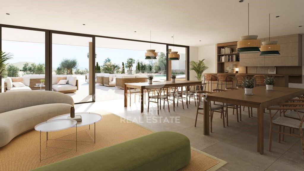 The communal areas are designed to cover every aspect of an active and social lifestyle. Facilities include outdoor saltwater swimming pools with night lighting and solarium, a separate lap pool, Beach Padel and Pickleball courts, a putting green, outdoor calisthenics area, a fully equipped communal gym, and a natural trail integrated into the surroundings for trekking. For professional and social use, there is an events room and a coworking space.